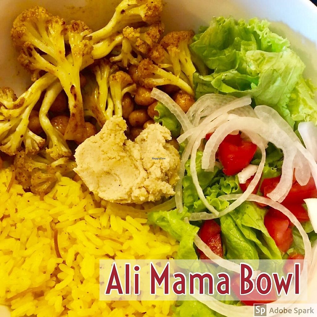 Serves meat, vegan options available. Middle Eastern restaurant with vegan options, including falafel wraps, plates, bowls, salads (fattoush an tabbouleh), chips, hummus, Arabic rice, and more. Reported closed February 2023.
