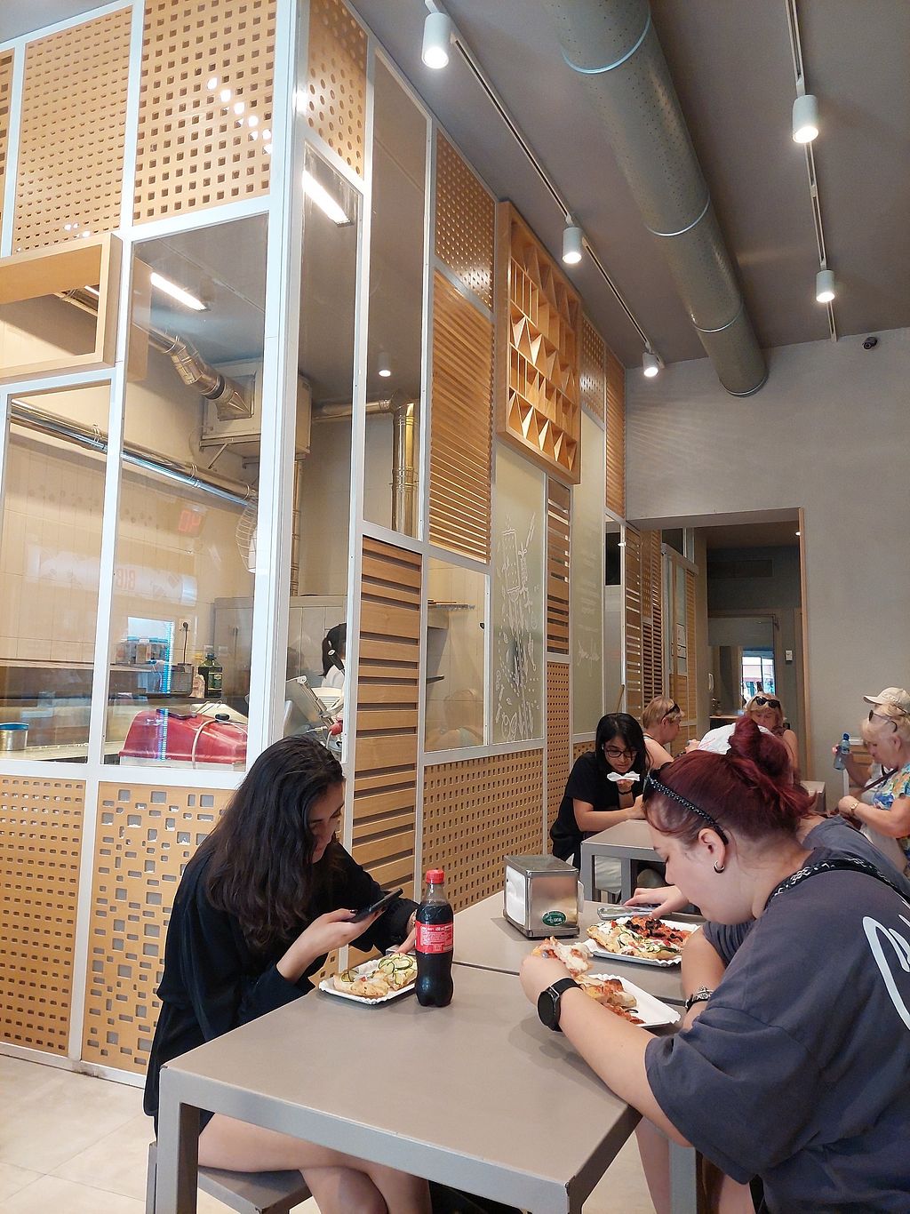 Came there for a quick snack, encouraged by other reviewers praising the pizza. It was ok, although the pizza was a bit stale (probably my mistake of not asking them to heat it up as I was in a hurry... However, I'm unsure it would make it that much better, especially the hardness of the rind). There was only one vegan option, and I could see that some of the pieces had some mozzarella stains on them from nearby pizzas. The staff was very friendly, but not entirely familiar with what veganism is, as I was recommended a pizza without cheese but with anchovies (ouch!).