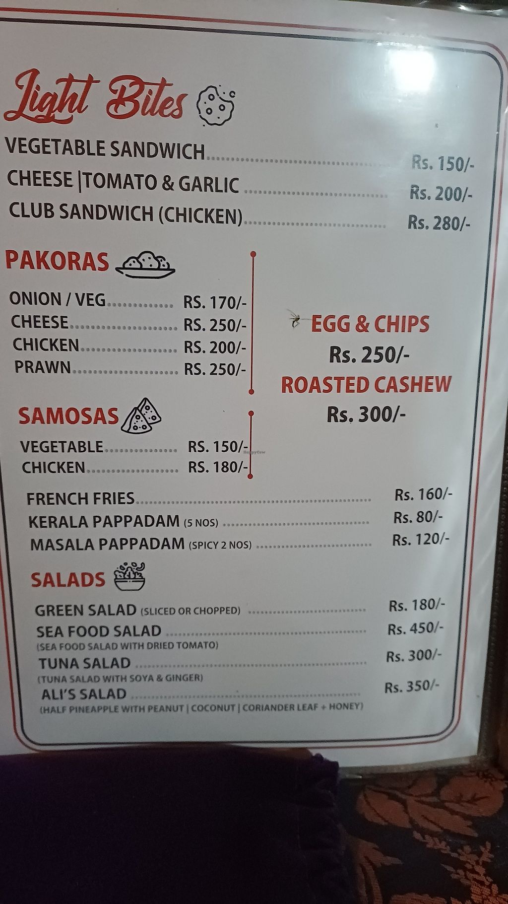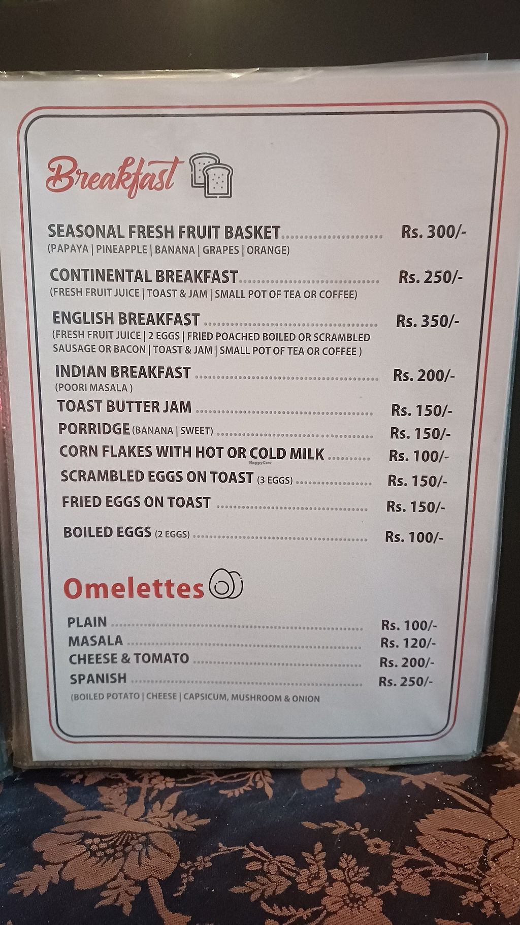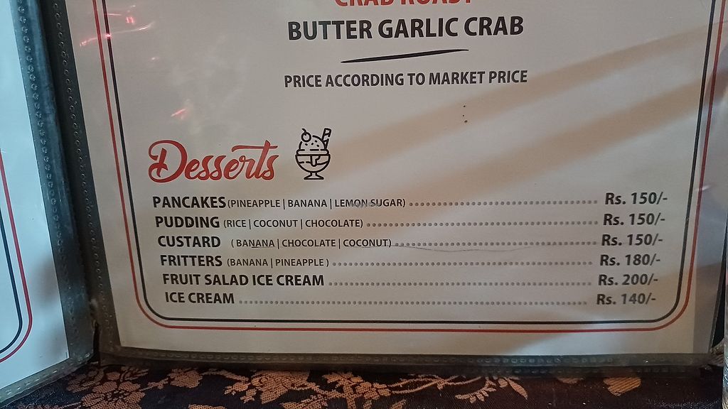 Serves meat, vegan options available. Beachside eatery serving Indian and Western fare. Only vegetarian options are labeled, but some of them are also vegan or can be made vegan. Specify do ghee/dairy/paneer when ordering. Choices could include palak kadai, mushroom masala, salads, fries, and vegetable curry. Open Mon-Sun 8:00am-10:00pm.