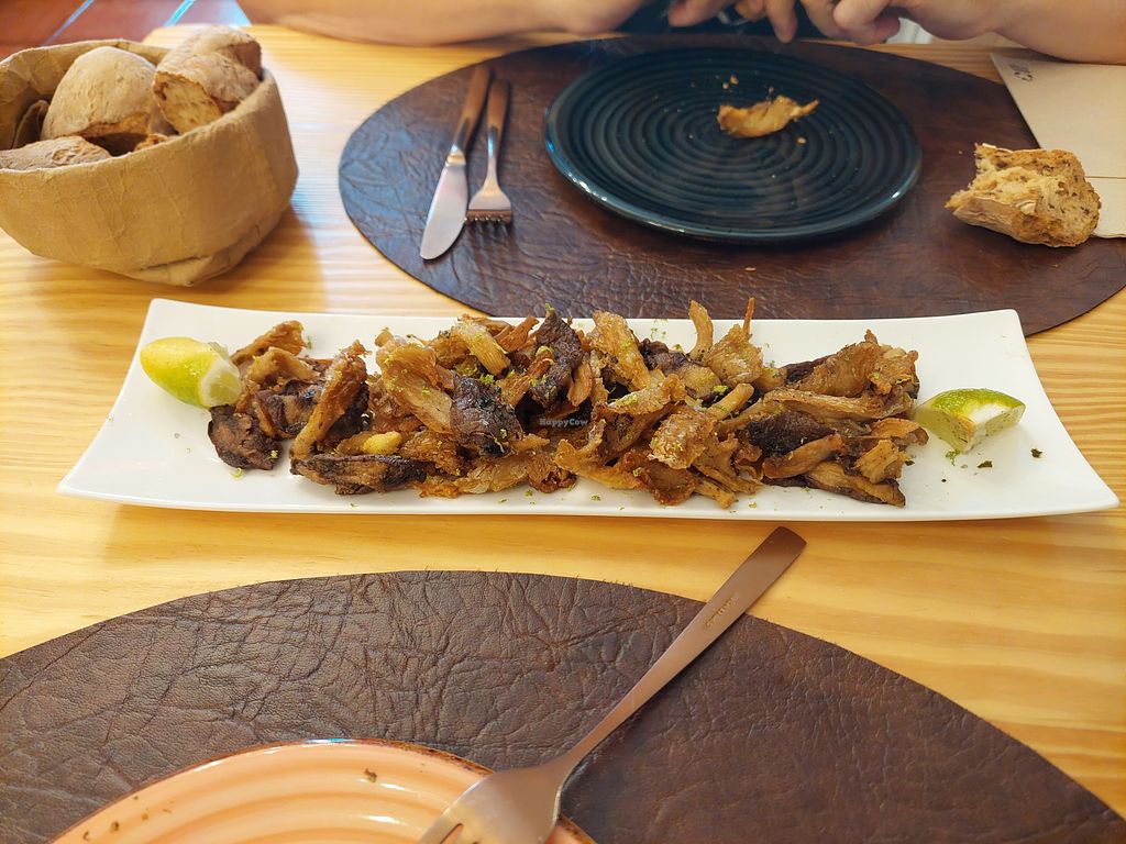 Vegan squid (mushrooms) and lentil flour bread