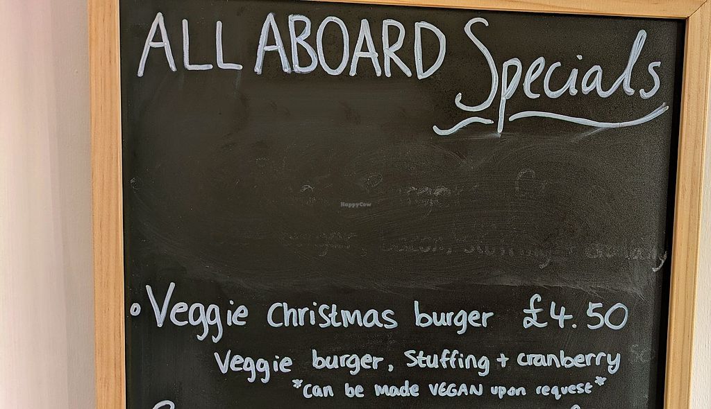 Read moreCalled in to have their vegan Christmas burger after a walk served in a lovely burger bun with stuffing, cranberry sauce and at £4.50 is an absolute bargain. I took some vegan siracha mayo as I like some spice but equally good without said my husband. Yvonne also makes vegan sausage rolls, Eccles cake and they have vegan vanilla ice cream.