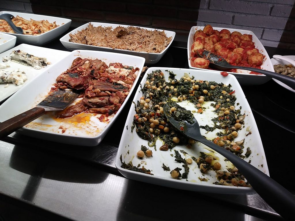 galets con garbanzos, pimiento rojo, espaguetis con pesto, arroz, tofu