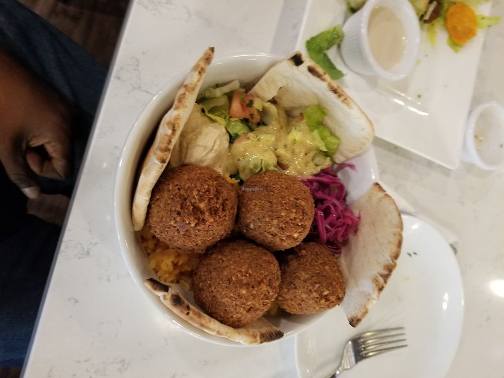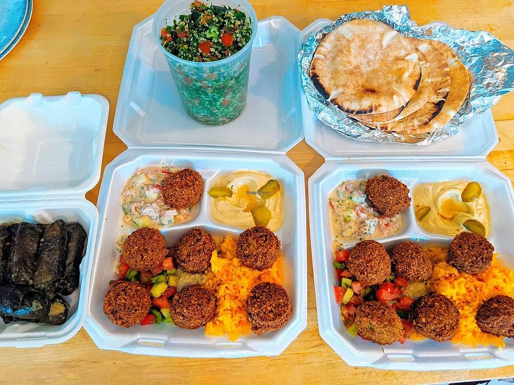 Serves meat, vegan options available. Middle Eastern and Mediterranean cuisine restaurant some vegan-friendly dishes such as tabouleh, tahini salad, Israeli salad, falafel, grape leaves, cauliflower fries, eggplant salad, and hummus. Also ask about baklava. Reported closed January 2023.