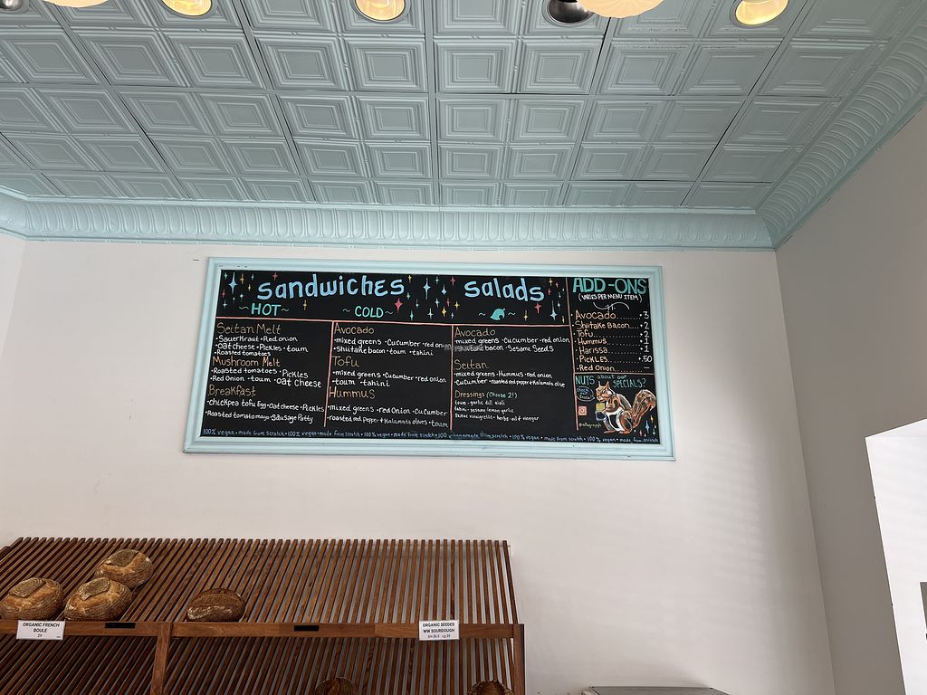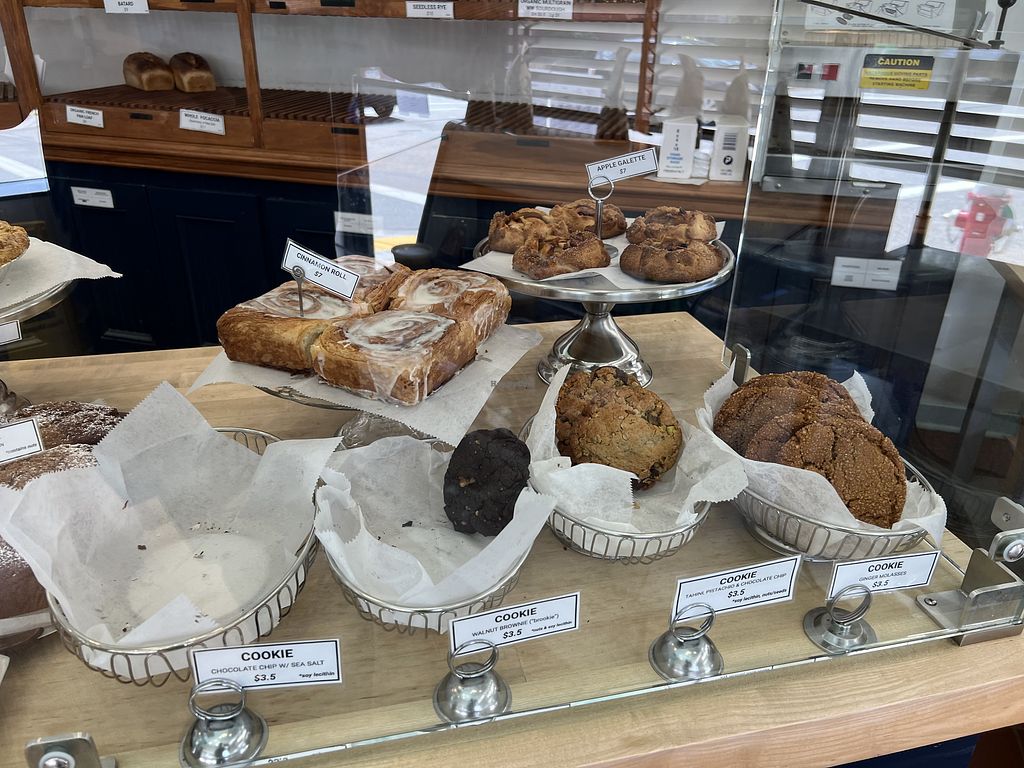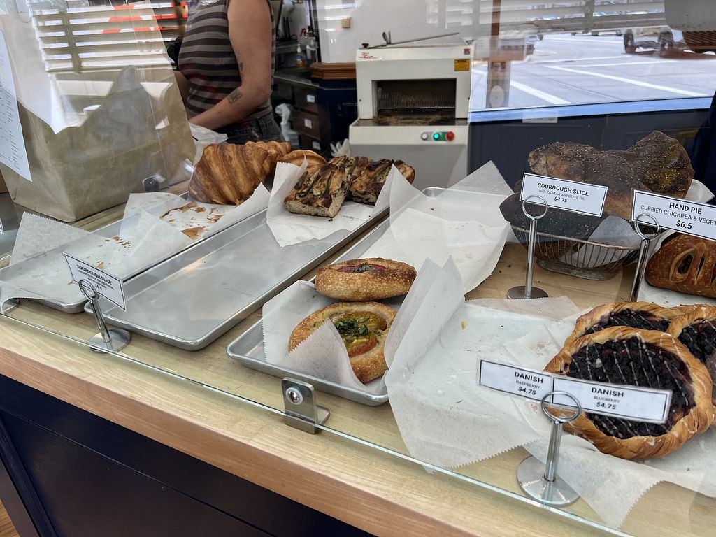 Read moreThey also have a lil fridge of to-go picnic snackies like fancy vegan cheeses & homemade dips & spreads to pair with their many amazing loaves of bread.