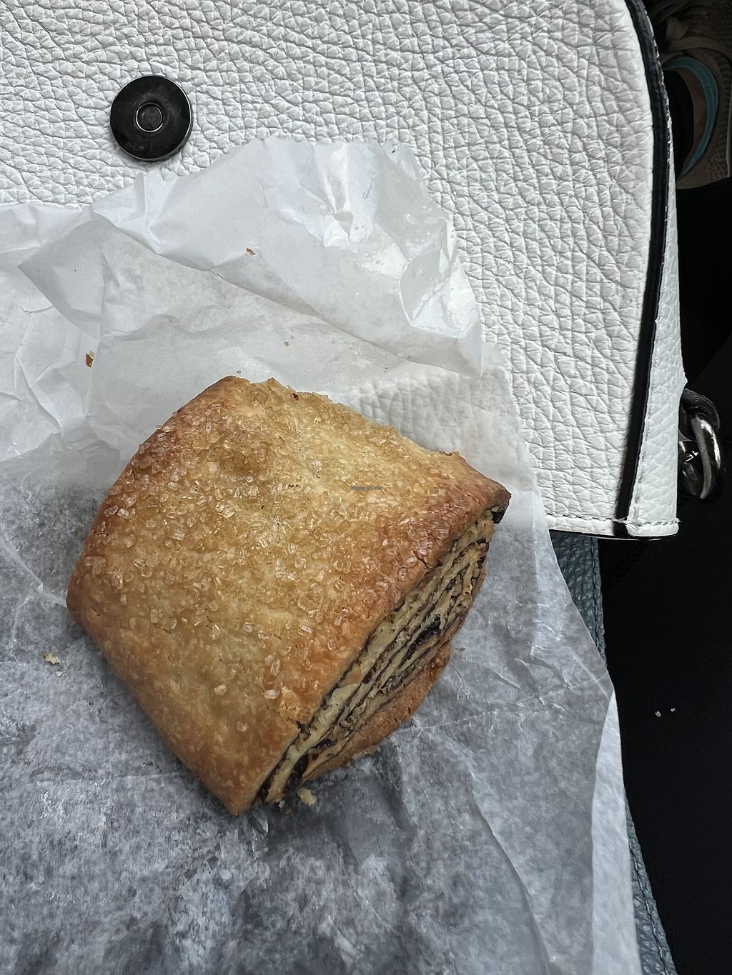 Got a plain croissant and apricot rugelach to eat—both excellent and well-priced! Non-veg partner said he wouldn’t know that croissant was vegan if he wasn’t told… super flaky! We also had coffee with oat milk 👍