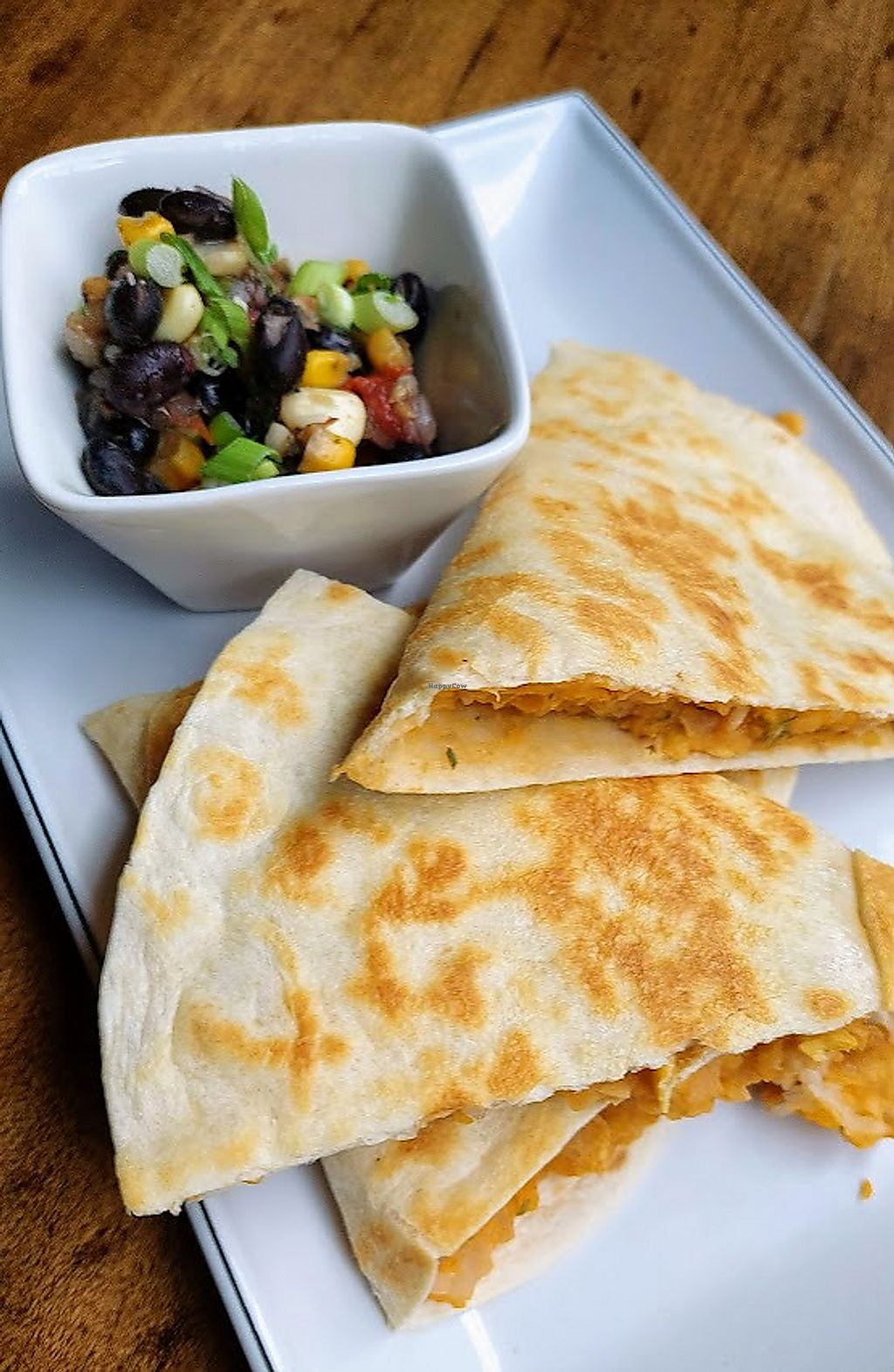 Vegan buffalo chickpea quesadilla