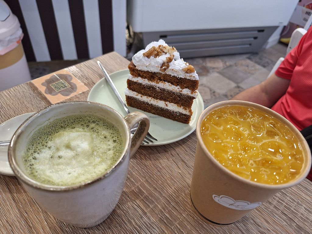 Chocolate, banana and strawberry crêpe & Carrot cake