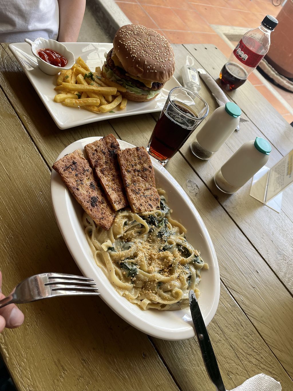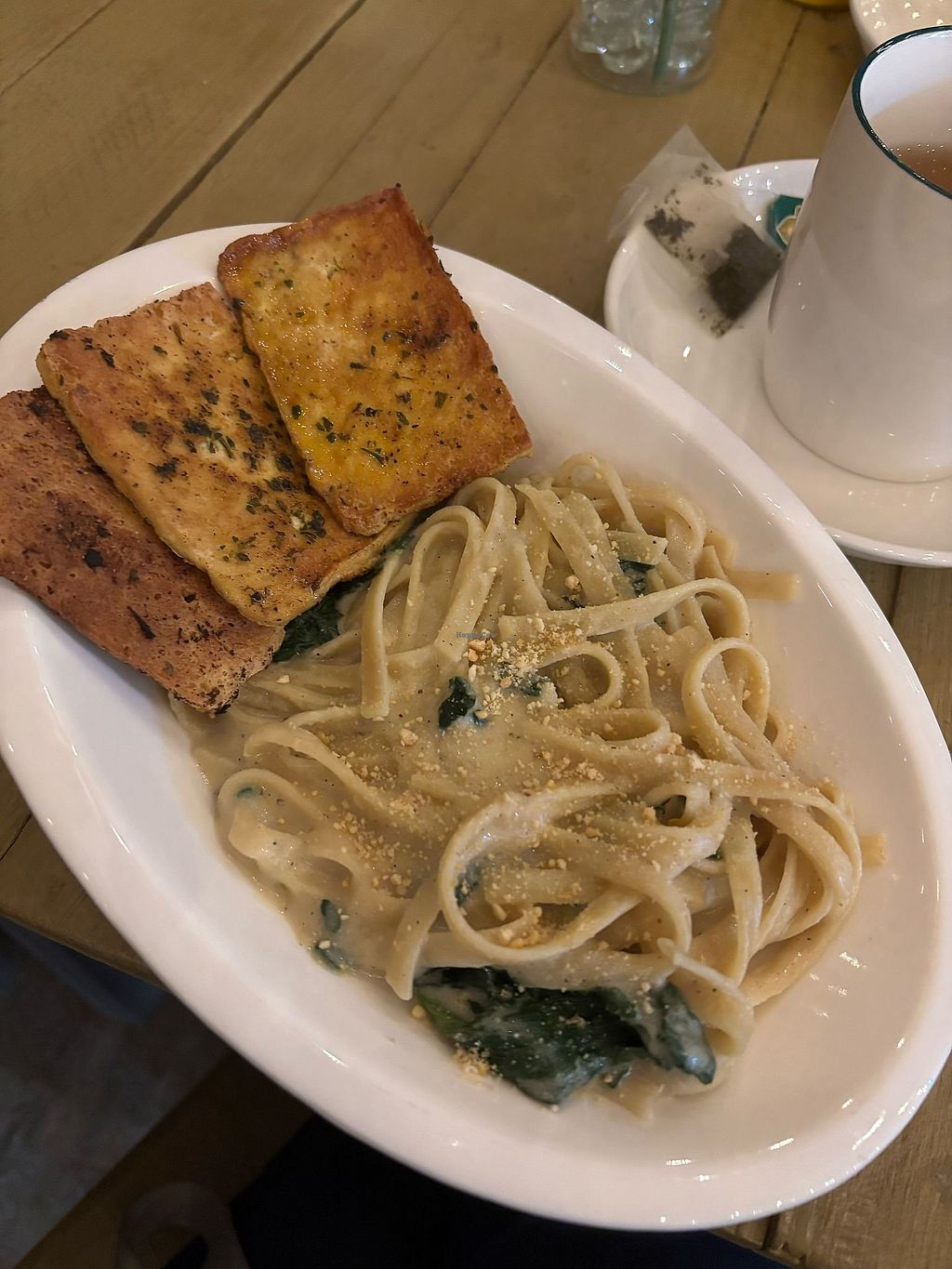 Fettuccine Marañoni + Fries + Falafelina Dip