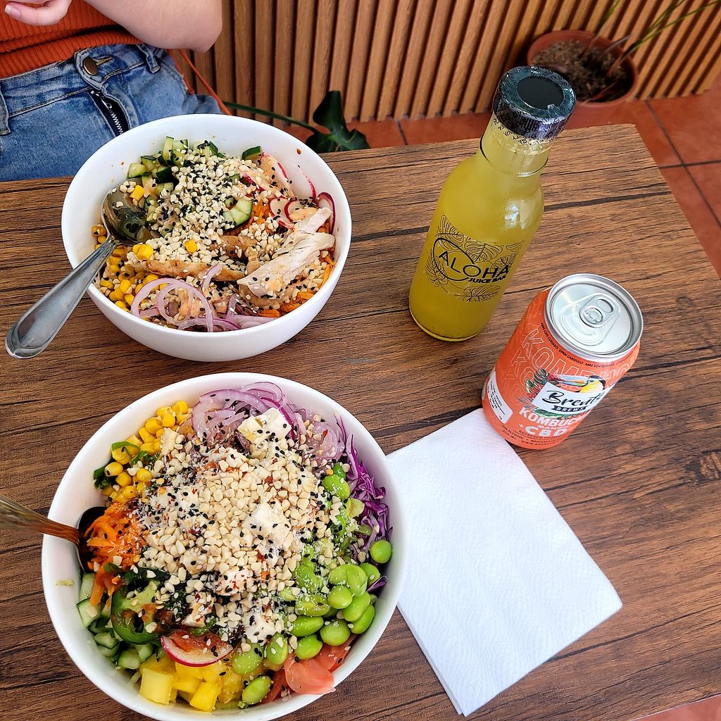 Delicioso bowl de Tofu y TODOS los vegetales, aderezo de maracuya y sa…