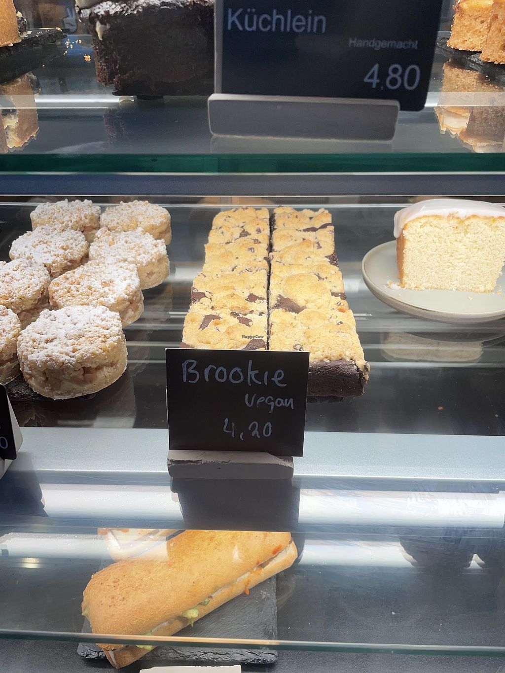 Nice coffee spot at Werksviertel with several clearly labeled vegan baked goods and around 3 plant milk options to choose from. Vegan Brookie was very chocolatey and heavy (in a good way).