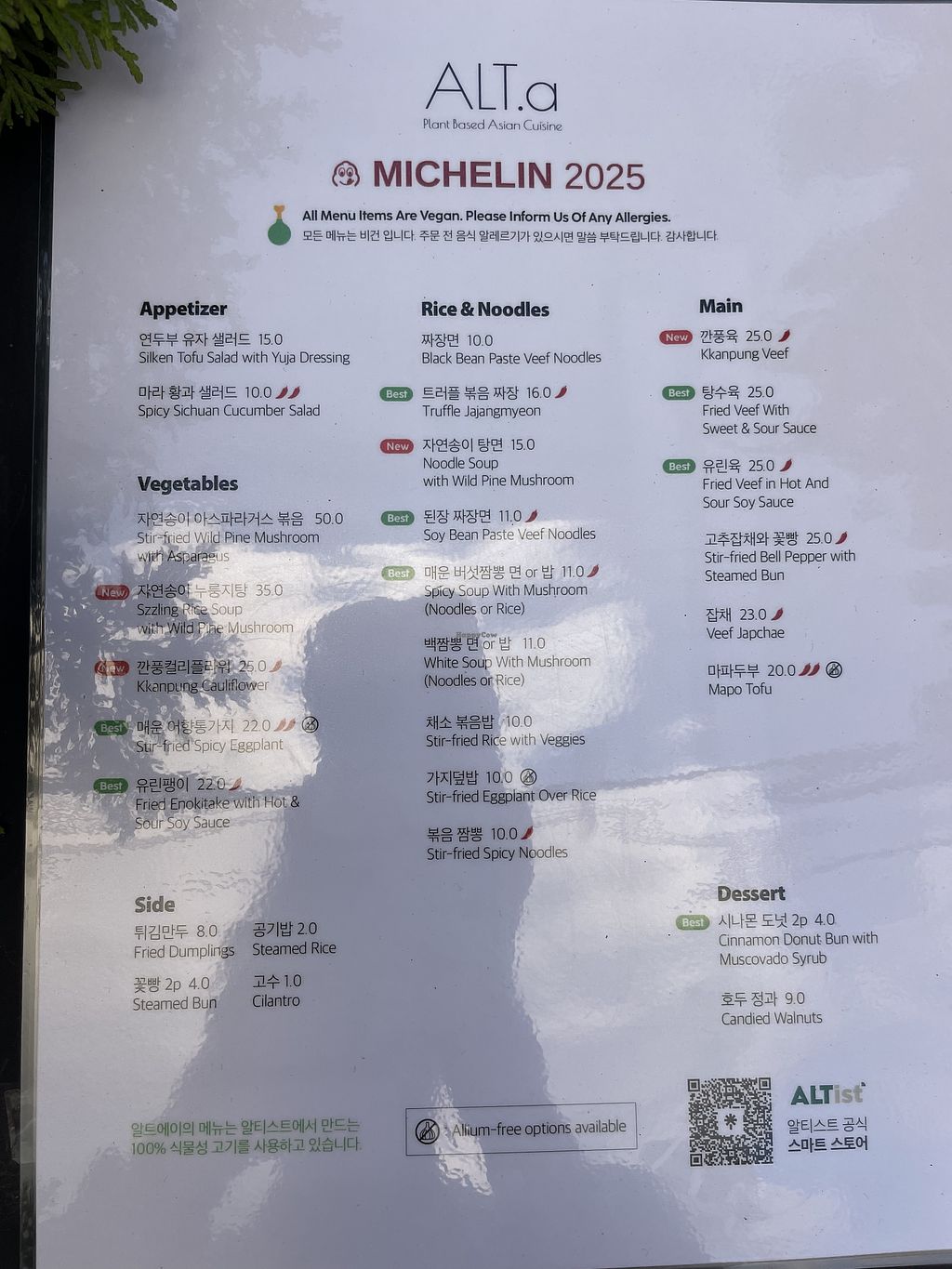 We had a great experience at alt.a in Seoul! We tried the mandu, black bean truffle noodles, and soybean paste noodles—everything was delicious. The noodles were perfectly chewy with great texture, and each dish was well-balanced and flavorful.