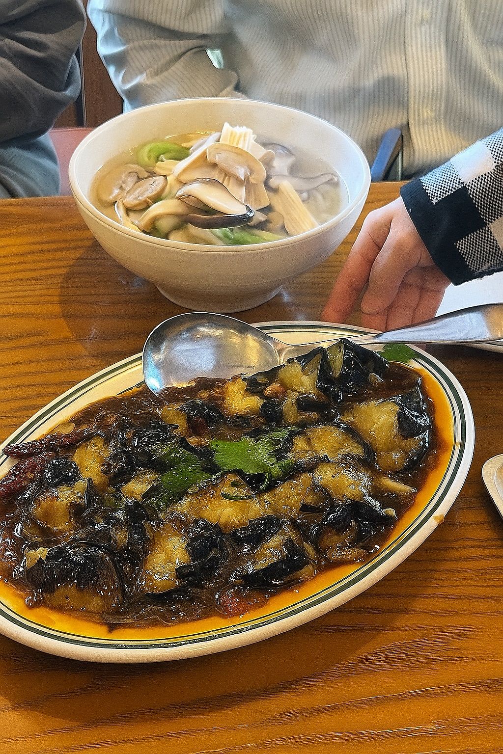 We had the hot and sour VEEF, mushroom soup, fried eggplant and fried dumplings. The VEEF was super light and cooked with plenty of yummy herbs and spices. You can taste the flame in this dish. The eggplant was soft and succulent. The mushroom soup was clean and soothing and the dumplings were crispy and satisfying. I think the VEEF really came to live with dunked in the eggplant sauce.