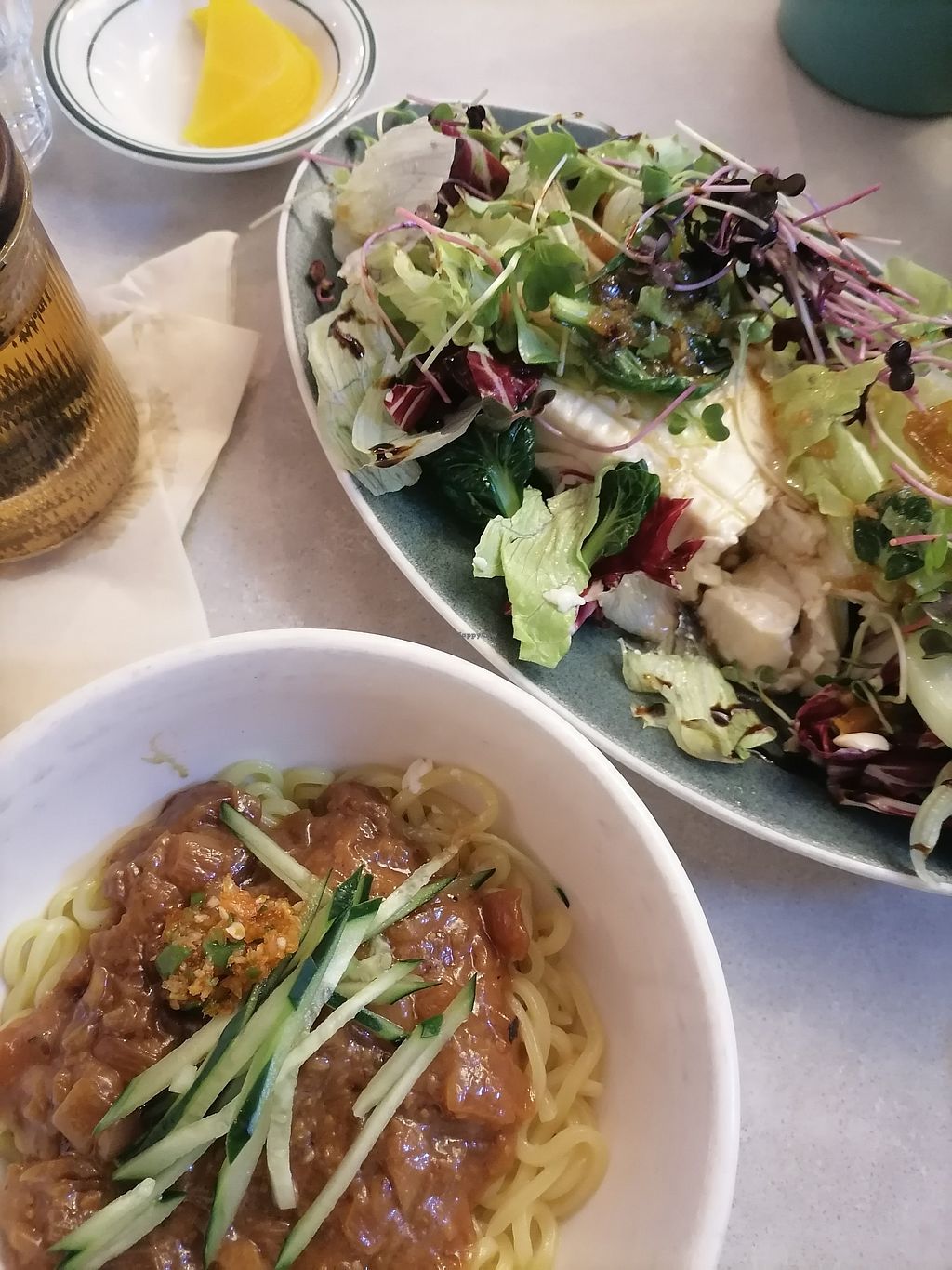 Lovely little place in a cool street, the menu is so tasty and dishes are quite big! I had a salad with silken tofu for starters and a noodle dish with veef