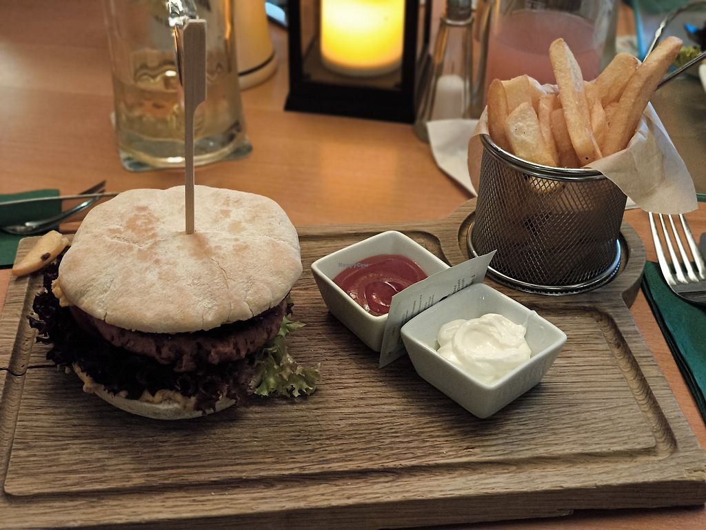 Serves meat, vegan options available. German restaurant with vegan choices. Menu includes mixed salad with bread, vegan roasted vegetable entree and french fries. Open Mon-Sat 17:30-23:00, Sun 11:30-14:00, 17:30-22:00.