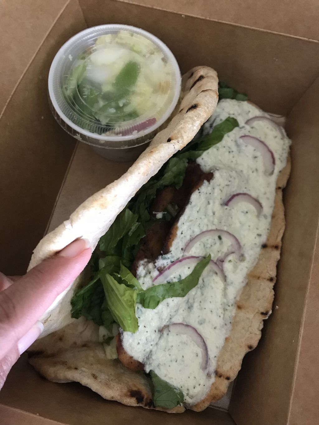 Gyro with organic coconut tsatziki, cucumber and tomato relish, organi…