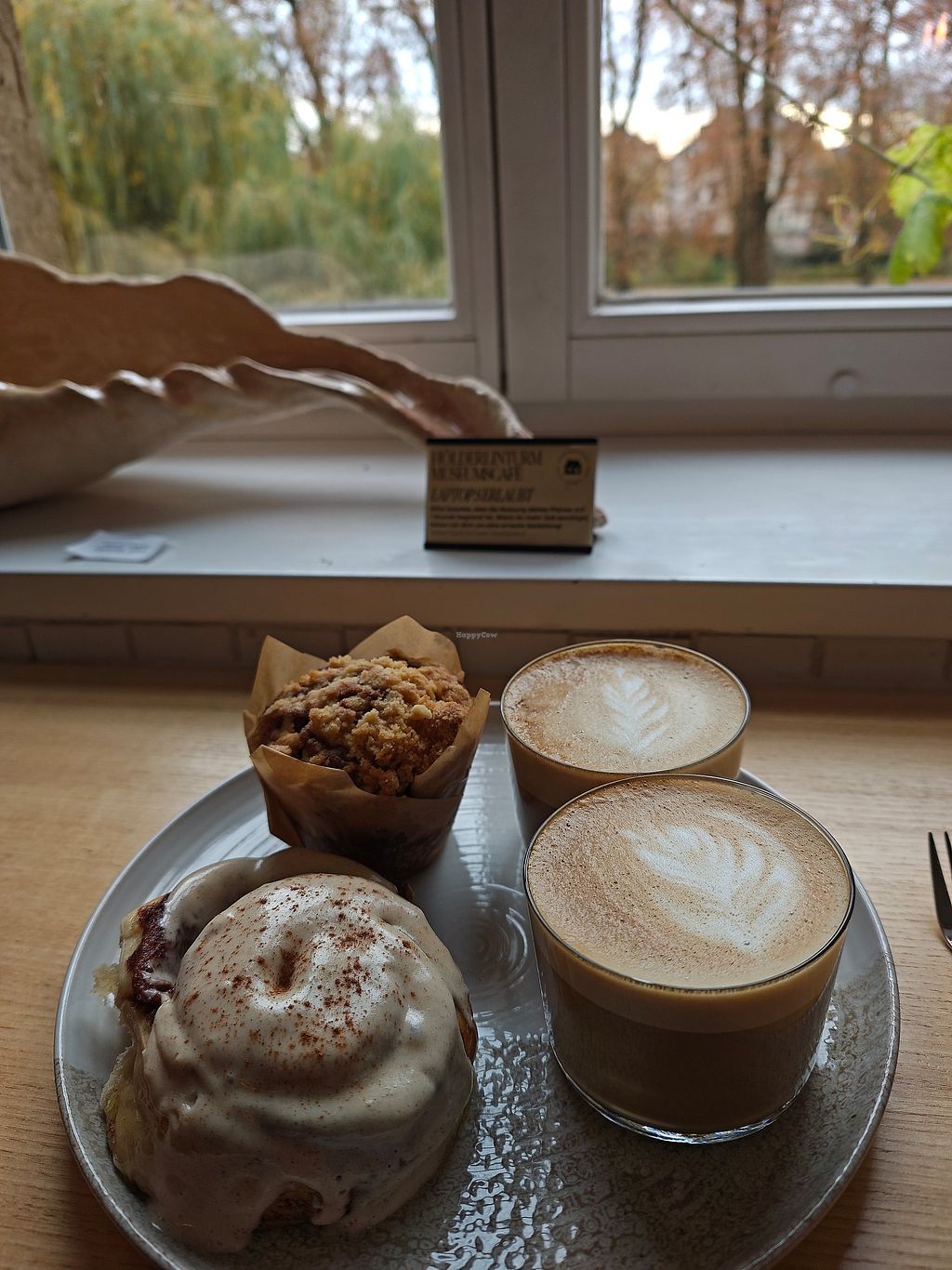 Serves meat, vegan options available. Nettes, gemütliches Café. Es gibt drinnen einige Plätze sowie draußen vor dem Café. Die Bestellung läuft per Selbstbedienung. Das Café hat einige vegane Optionen (z.B. Zimtschnecken, Blaubeermuffins). Kaffee kann mit Hafermilch zubereitet werden., Zimtschnecken, Bananenbrot, Blaubeermuffins Open Mon 10:00-17:00, Thu 10:00-05:00, Fri-Sun 10:00-17:00.