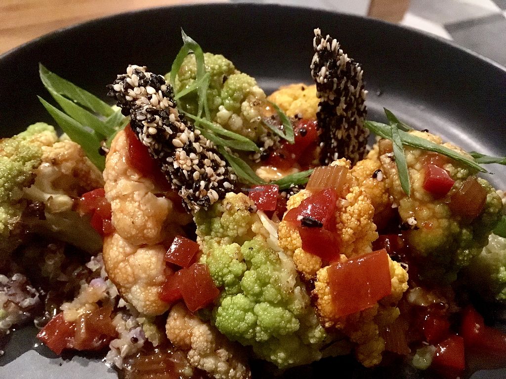 Kung pao cauliflower with sesame brittle
