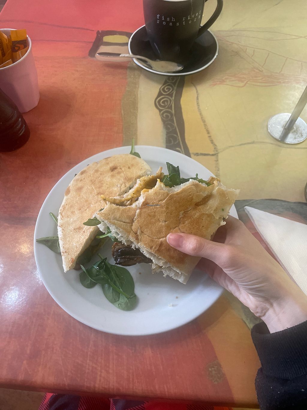 This cafe has a few options for vegan. I got the roast pumpkin sandwich with no feta but added a vegan cheese slice. I don’t think it needed the cheese. Vegan cheese is not great when it’s not melted.