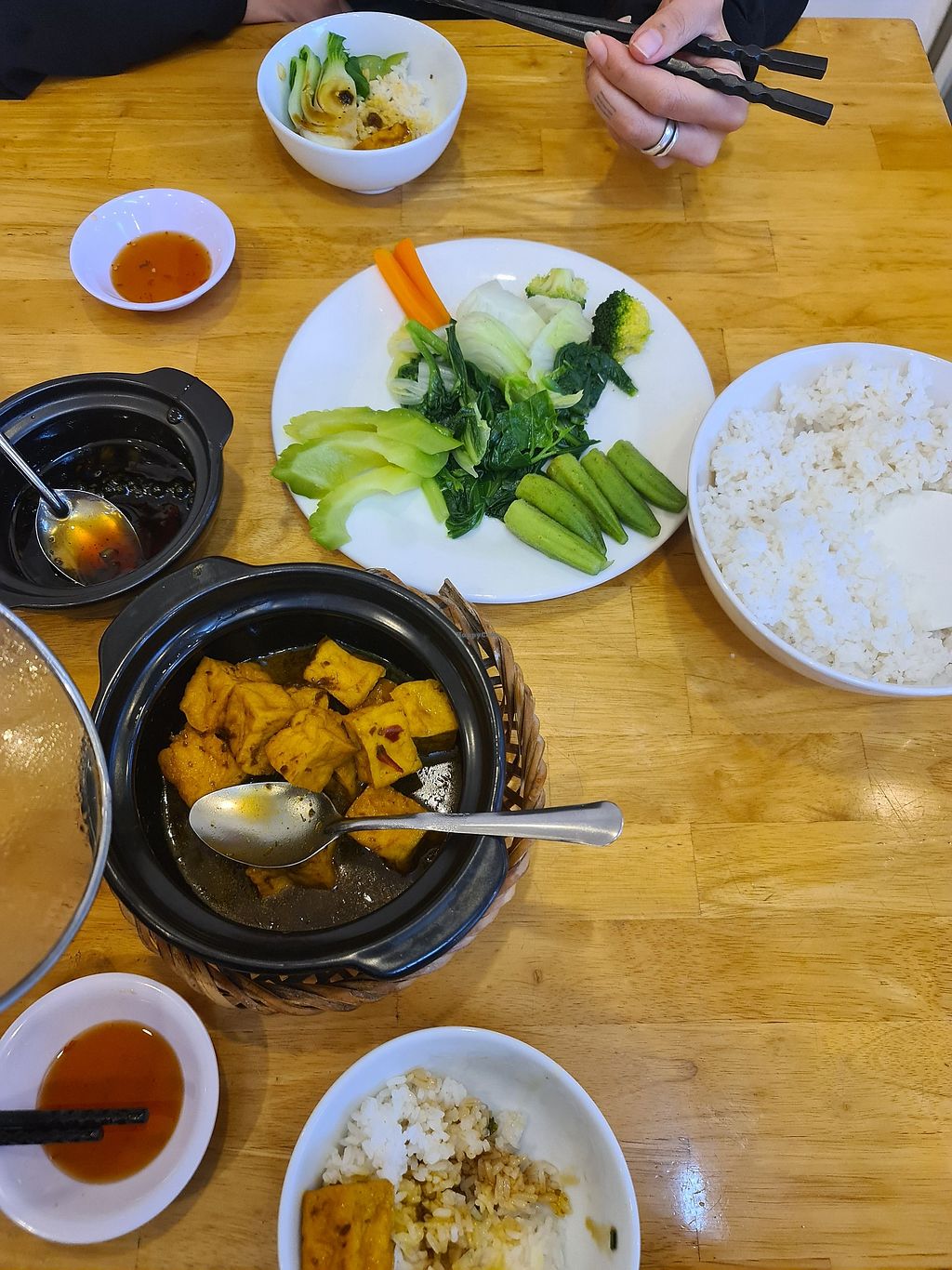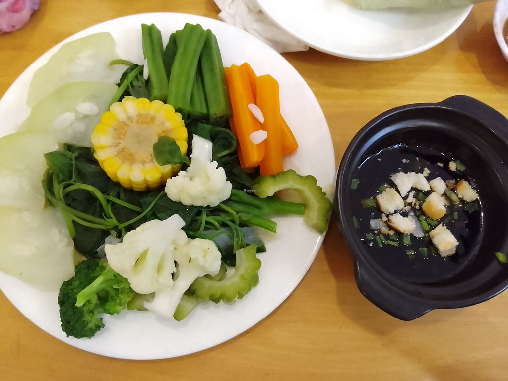 Boiled veggies and dipping sauce