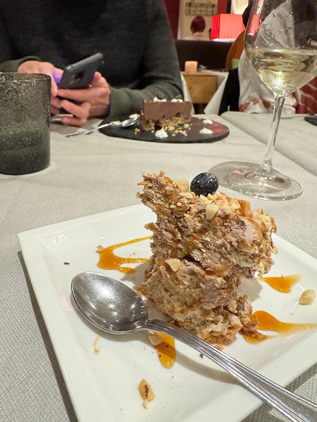 Crumble di mele e cannella con gelato al cocco e composta di arance
