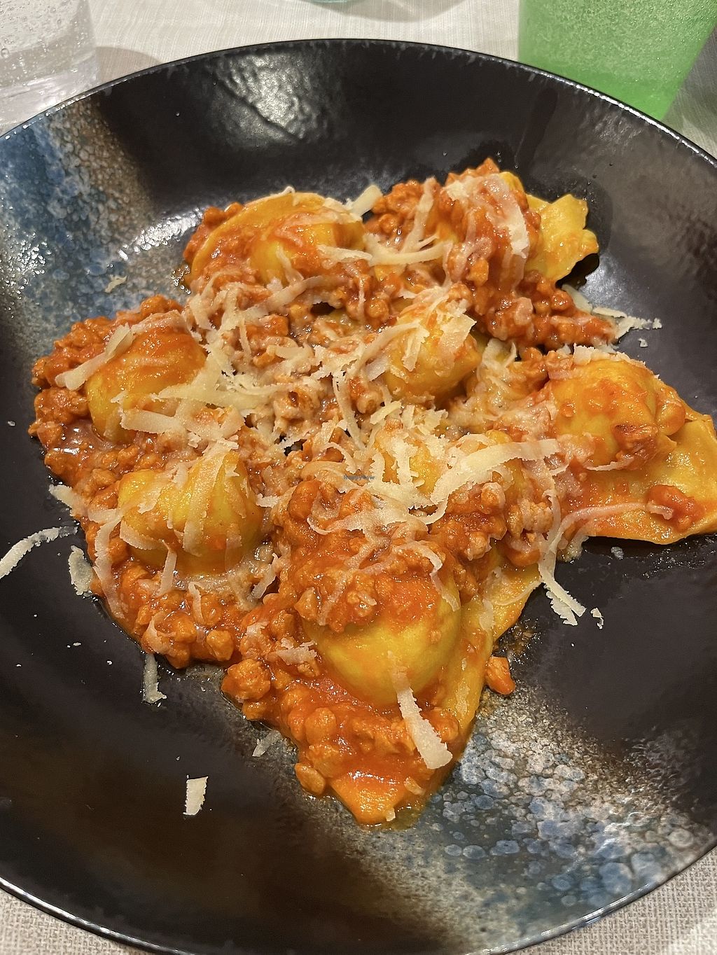 Cappelletti ripieni di formaggio veg al ragù di soia