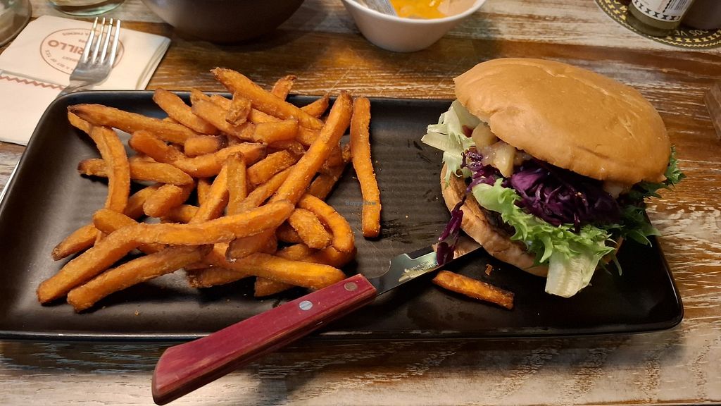 Serves meat, vegan options available. Mex-American restaurant with vegan choices. Vegan menu includes vegan tacos, salad and burger, all with vegan mayonnaise and cheese available. Open Mon-Fri 11:00-22:00, Sat 12:00-22:00, Sun 14:00-21:00.