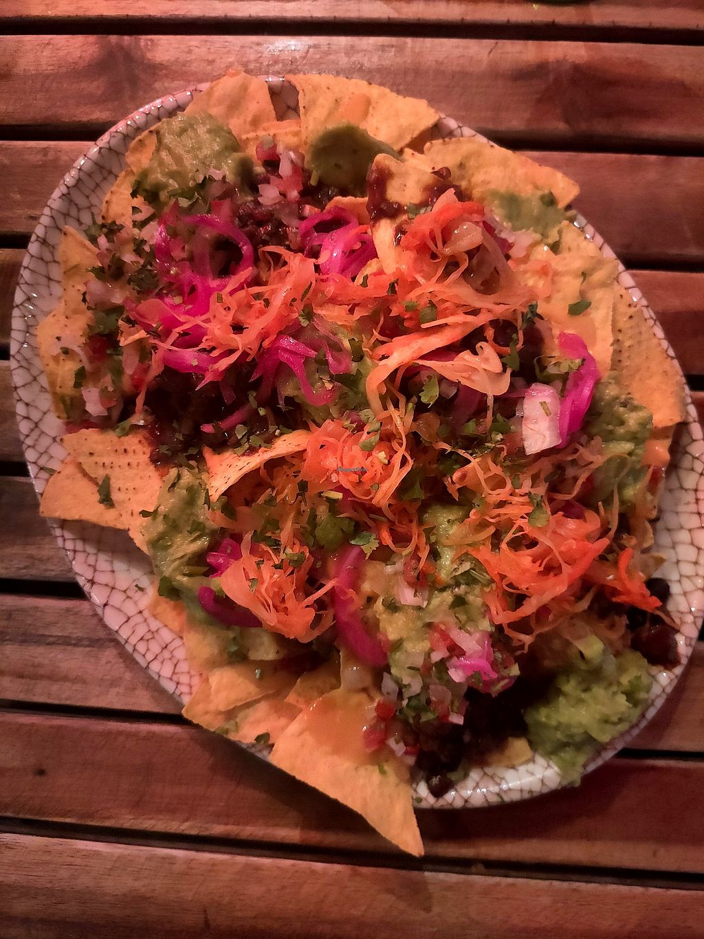 Nachos y tacos de portobello guisado, pico de gallo, cebolla curtida y…
