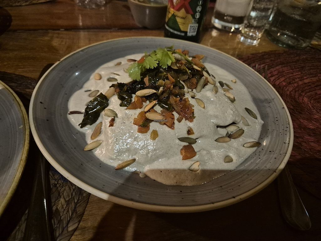 Read moreProbé las empanadas de chaya rellenas de plátano macho y la sopa de chaya; todo muy rico, como recomendación, hay que especificar que tu platillo, al menos en el caso de las empanadas, es la opción vegetal, para no tener ningún inconveniente.