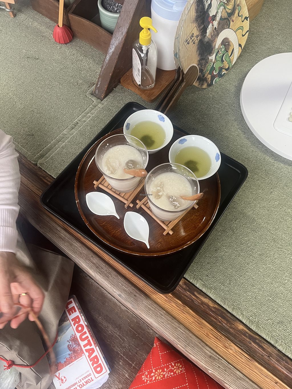 Definitely worth the stop on the way down from the Inari torii!! Hot or cold option, served with ginger to add in, it’s naturally vegan. Served with green tea on the side. The woman running it is super sweet. Tucked away from the main road so it’s very quiet and peaceful.
