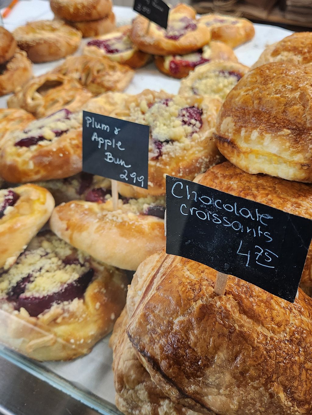Love little independently owned places like this. ✨Very friendly, helpful staff who were well-versed on what vegan is and what their vegan selections were. Unfortunately, the chocolate raspberry tart is the only vegan pastry item they currently offer and they were sold out when I got there. Three stars instead of four, just because they don't have more vegan pastries or cookies. That said, ALL their sourdough bread except the Parmesan is vegan.