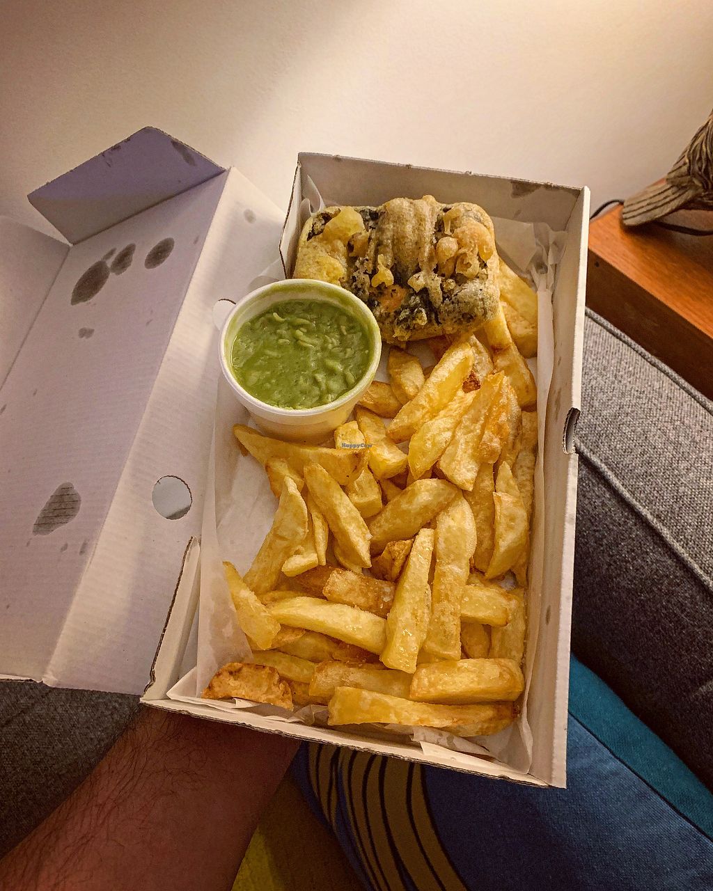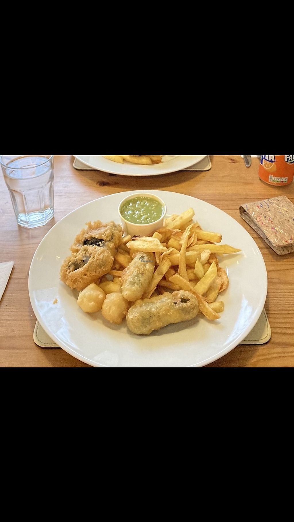 Really friendly guy, lovely tofu fish and chips - uses nori sheets which is a nice extra that a lot of places often don’t do. The mushy peas are delicious too! Oh and the frickles. Fried pickles and onions, lovvvely.