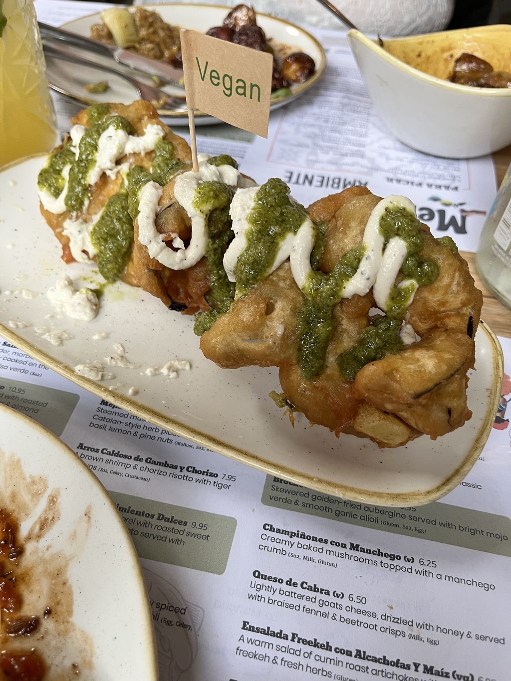 Read moreHowever, having been given the menu, we decided on the vegetable paella for two and as that would take 35mins (as all paellas do take some time) we thought we'd order a couple of dishes first. I checked with the waitress if something had any dairy in it and I was handed the menu again, but this time with stickers next to everything dairy free. This also included the meat items, but the whole menu was covered in little stickers, there were plenty veggie options and apart from the obvious with cheese or cream, they all appeared to be vegan. There were also other notes on this menu so I assume this is for other items which may cause allergies.