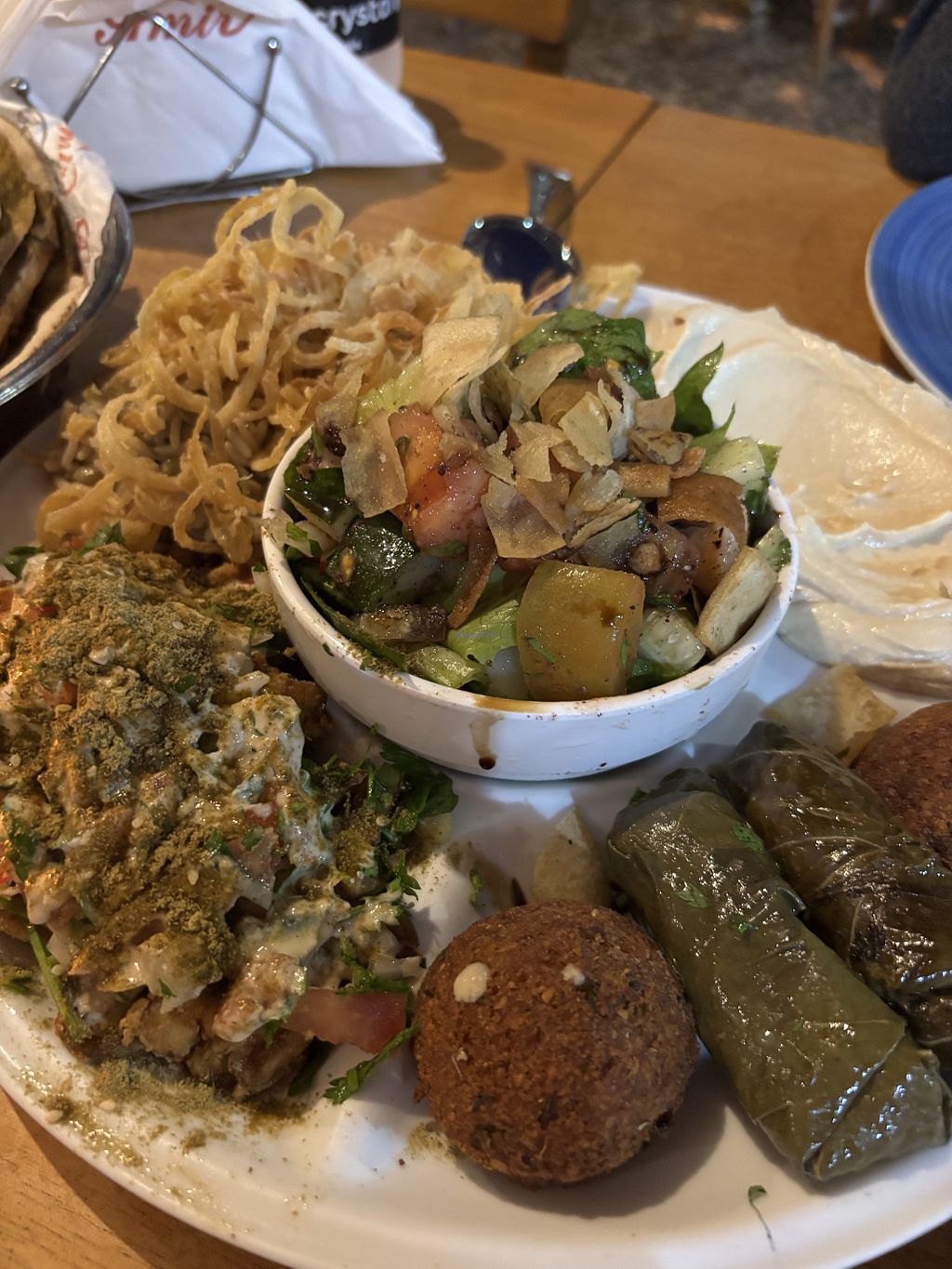 Read moreHummus with an incredible basket of breads, the best falafels I’ve had outside of the Middle East, kibes filled with spinach, grape leaves tools, rice with lentils and crispy onion.