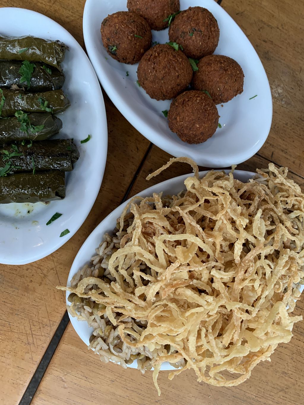 "Vegetariano do Amir" (arroz com lentilha e cebola frita, babaganouch,…