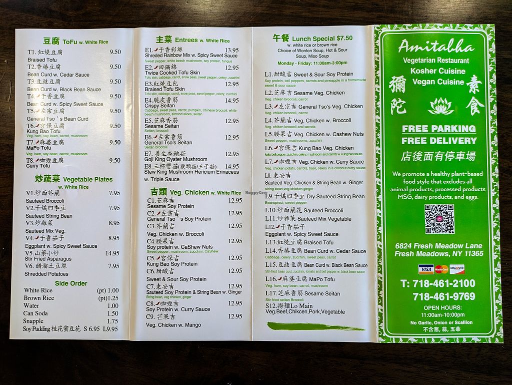 Menu page at Amitabha Vegan