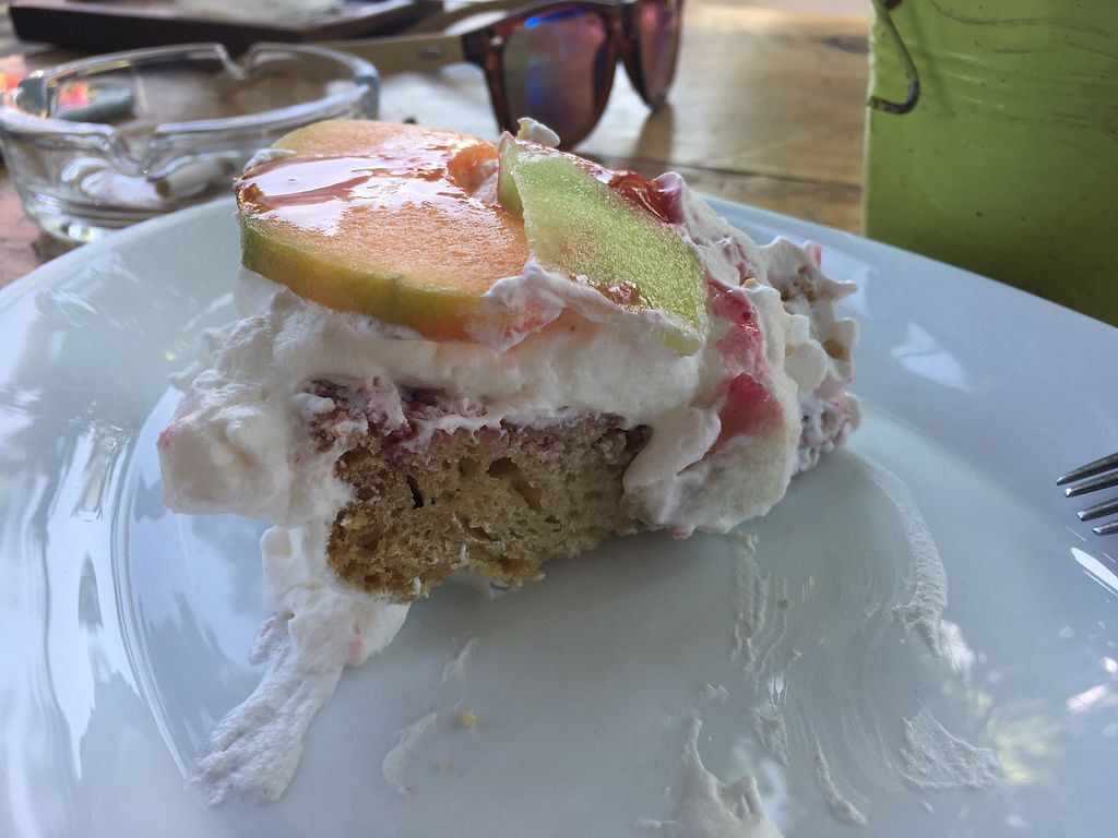 We went there around 6 pm to have a fresh juice (nice!) and a piece of cake. Amongst the (few) vegan options for dessert there was only one available, which was below average (see picture): the crust was dry, lot of cream and a few slices of melon. Lots of sugar, no good texture.