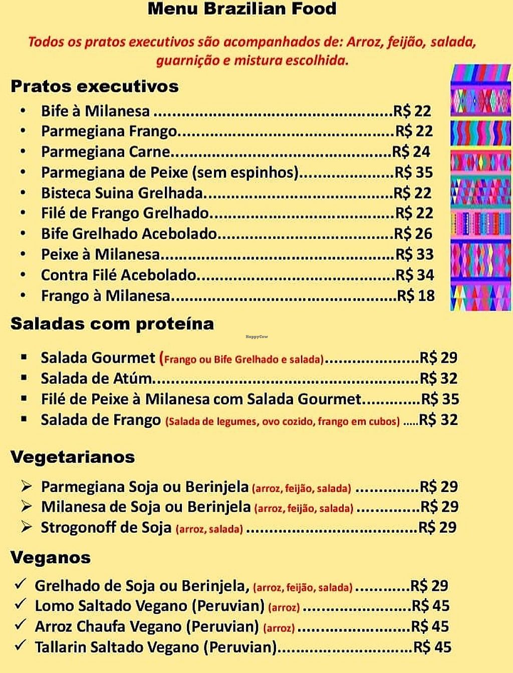 Cardápio com opções veganas
