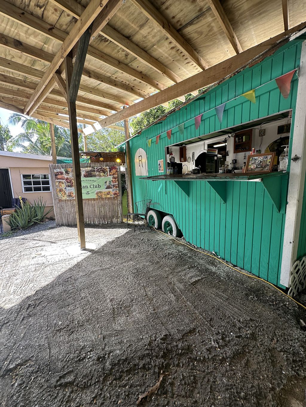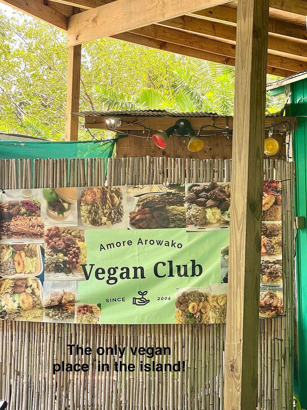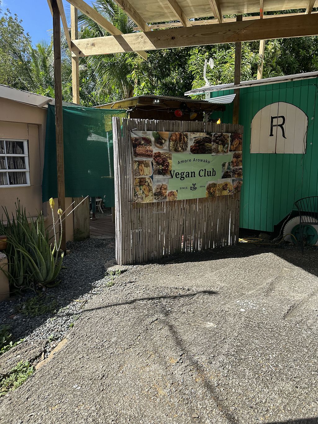Found this place on our last day and wish we got there sooner. They seem to have plates of Caribbean food starting at noon but get there early because they run out. Had burgers and sweet potato fries which were still really good. Drinks as big as my head! Baked goods including banana bread as well. Location is currently wrong on Happy Cow but we have submitted an update. Correct location on Apple Maps. Called Amore Arowako private ride shares on google maps.