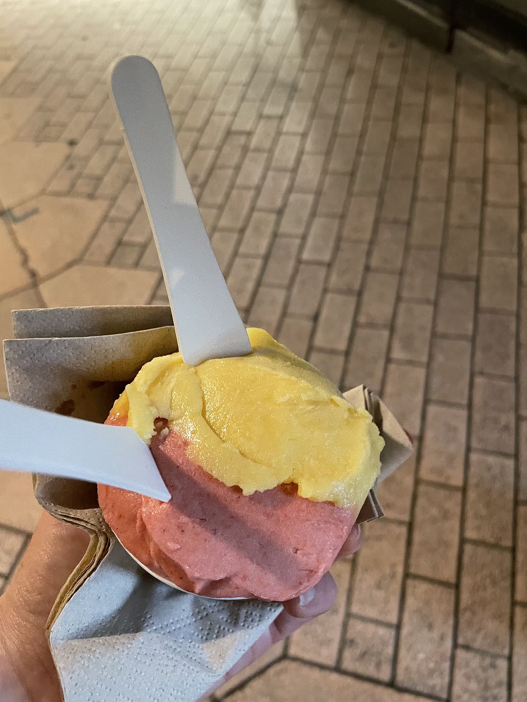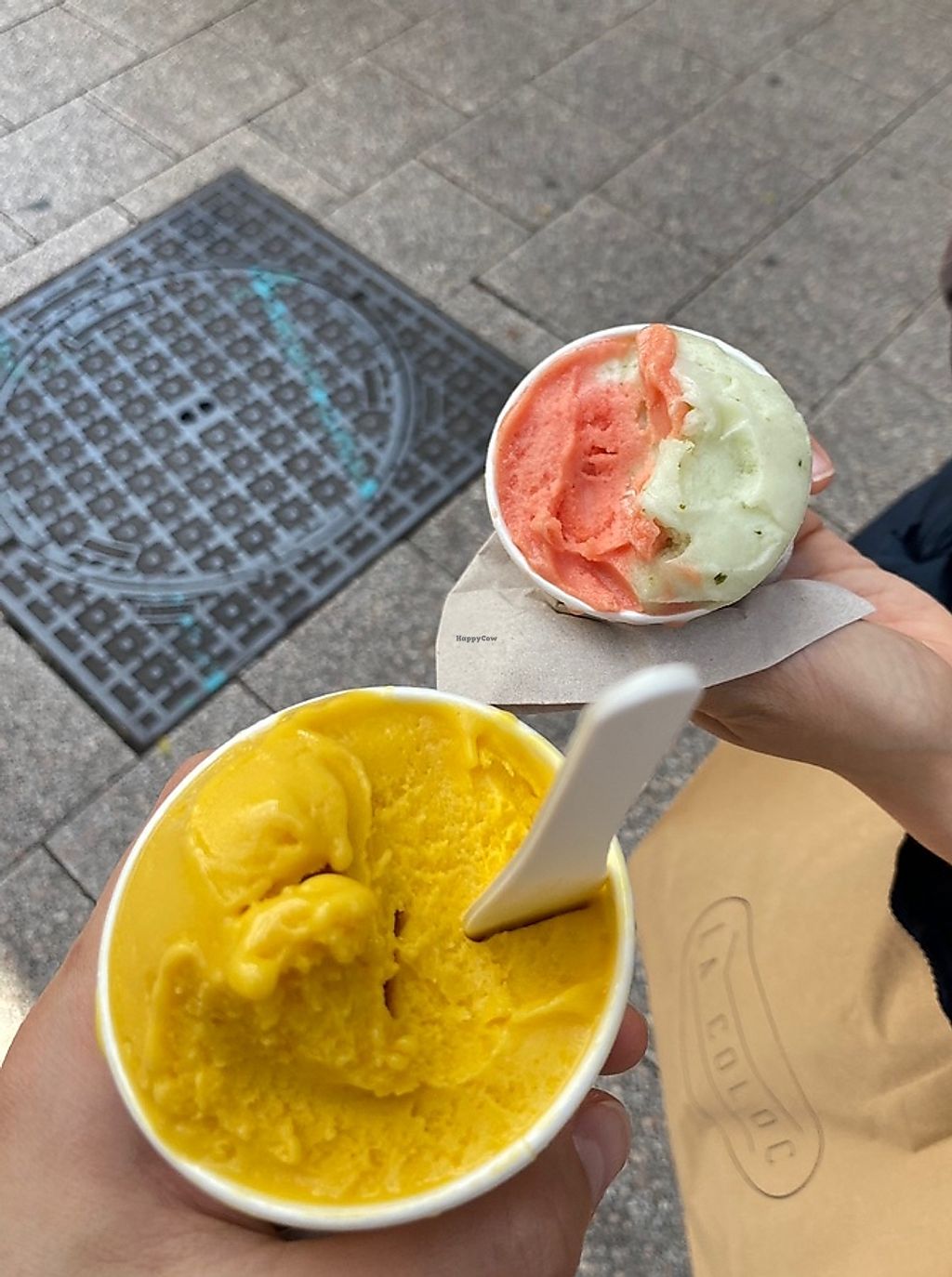 Cons: No vegan cones, Very sweet , No vegan ice cream, just sorbetes