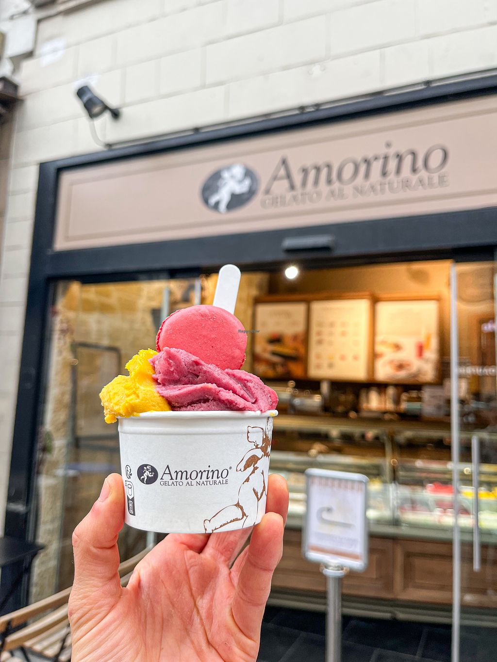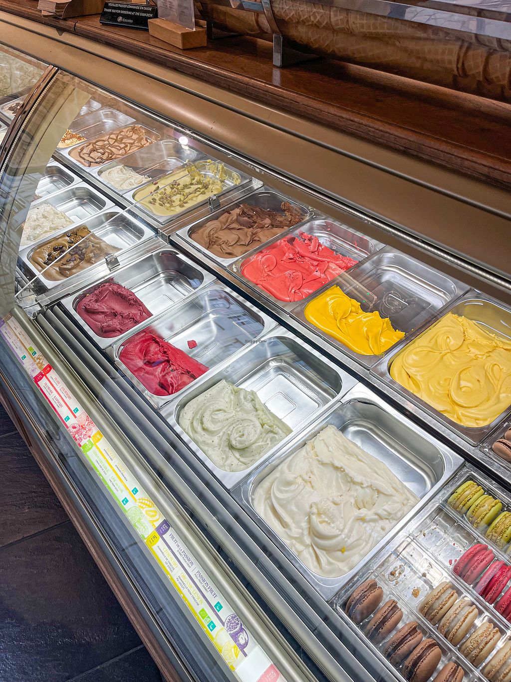 They had 8 different flavors that were vegan and we had chocolate sorbet(the best!), strawberry, raspberry, passion fruit and lime&basil. Everything was really good and the staff were so friendly. It's located near tourist attractions and has outdoor seating that's perfect for people watching over tasty sorbet :)