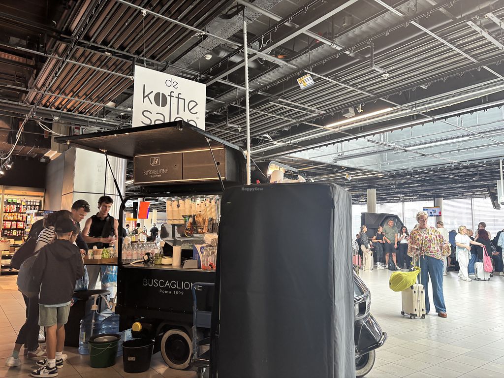 Bij dit leuke koffiekarretje is alleen maar plantaardige melk verkrijgbaar. Zo fijn om dit te vinden tussen alle grote ketens. Probeer ook de lekkere vegan haverkoek!