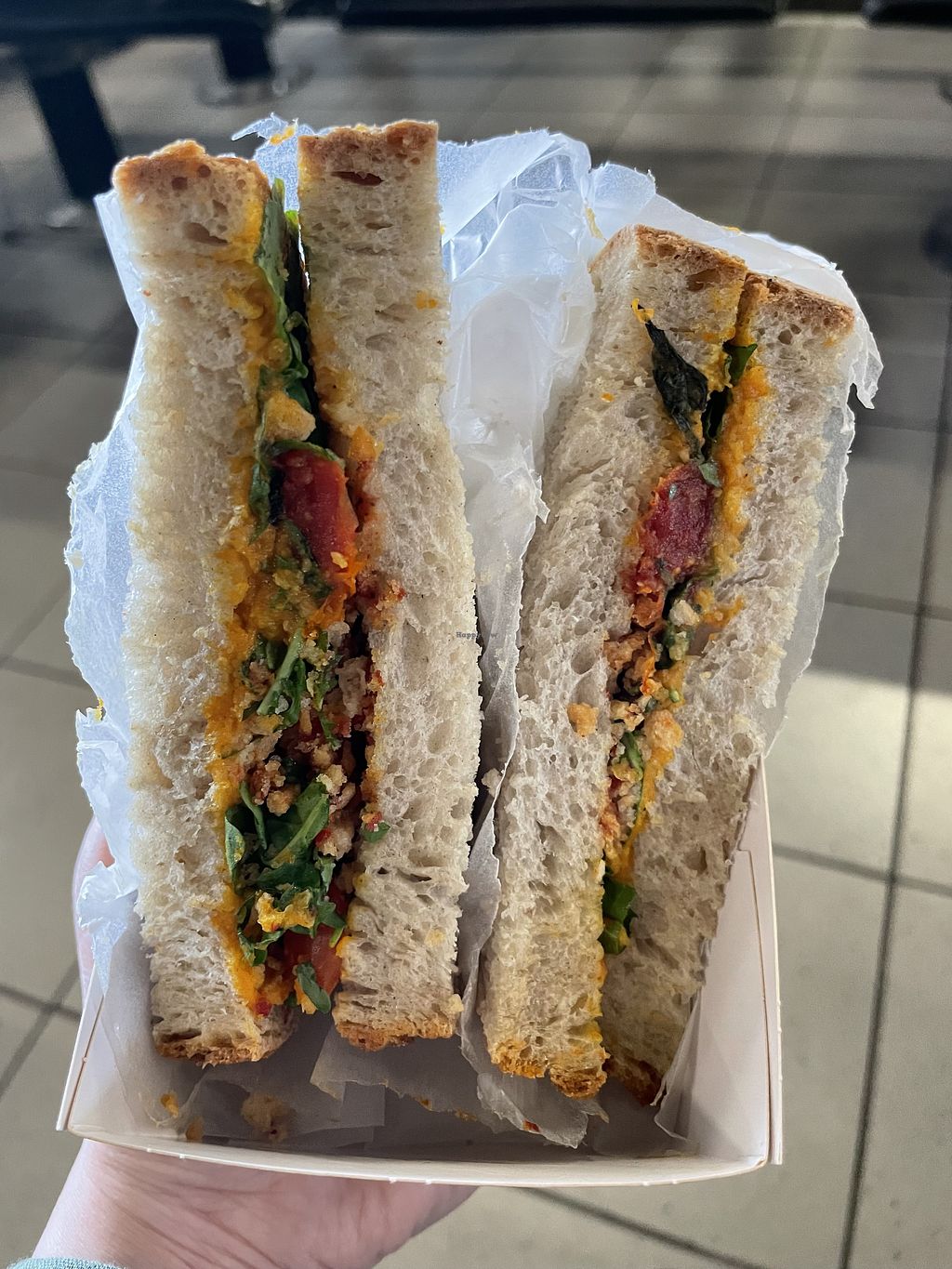 This location had a few plant-based options to include a sweet potato curry sandwich and an avocado coriander sandwich. Bread is flavorful - good fresh food option for this airport.