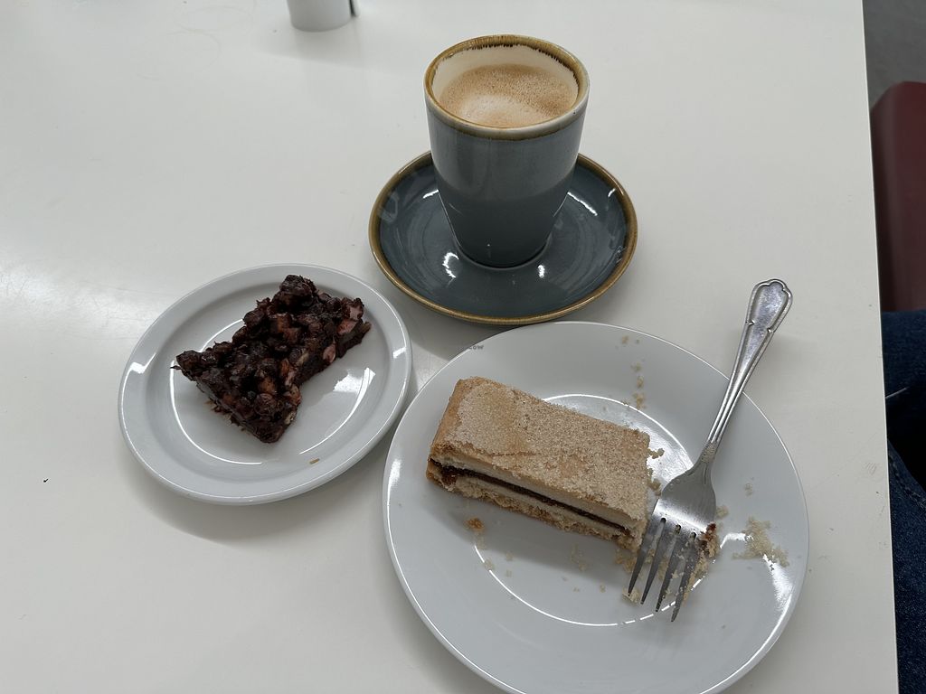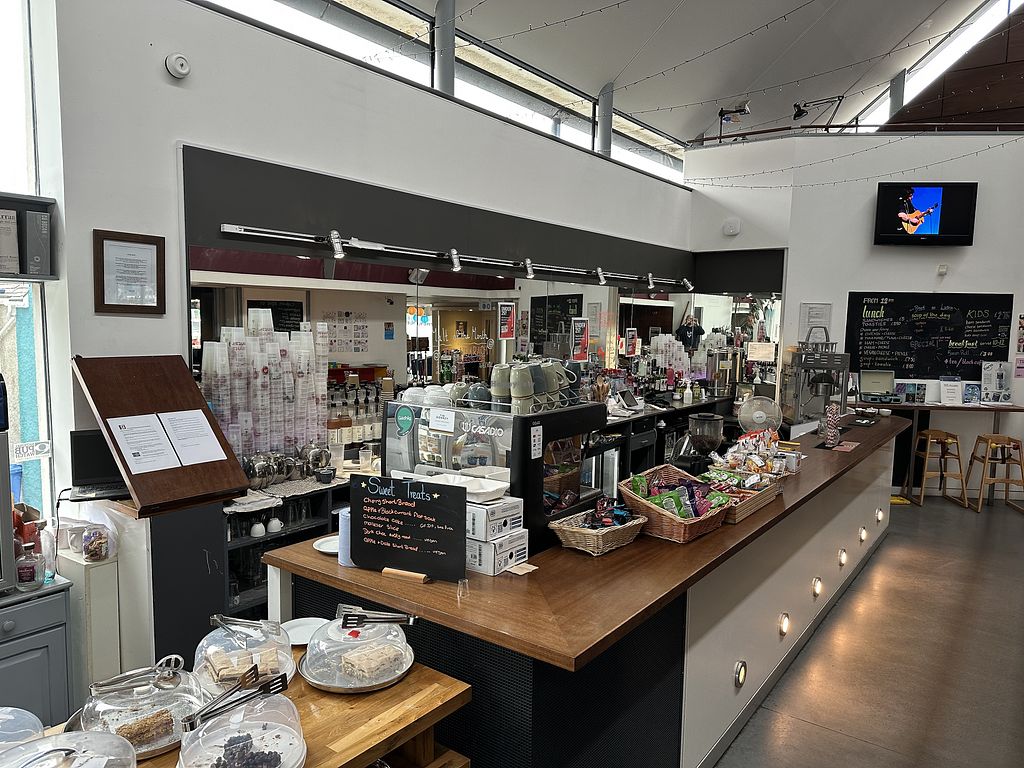 Nice selection of tray bakes and vegan options of sandwiches and soups. They are also licensed which helps take the edge off the cold wind.