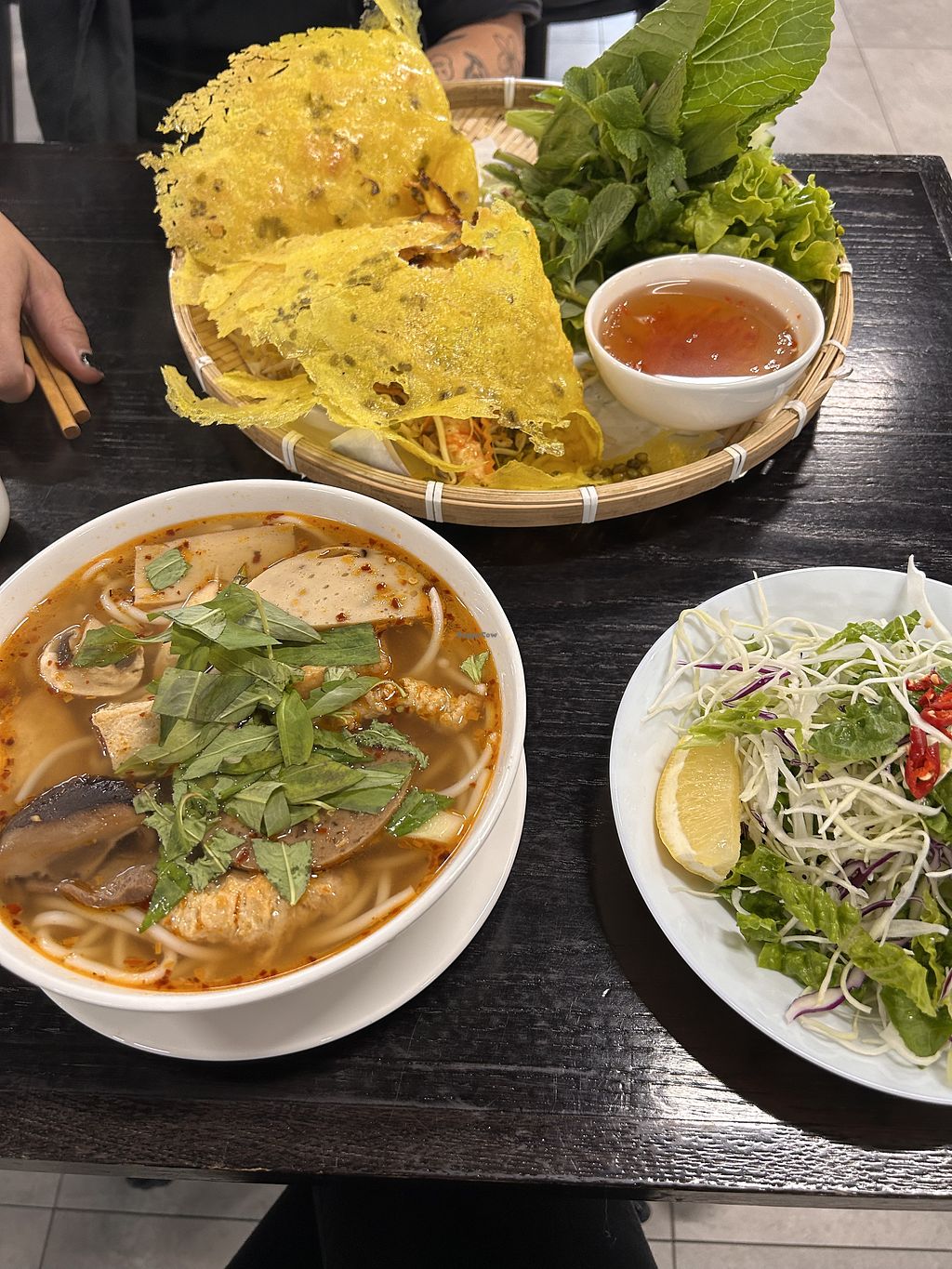 - Bun Hue (Hue Noodle Soup): Incredibly spicy, better once added greens in, lots of fake meats (most delish)