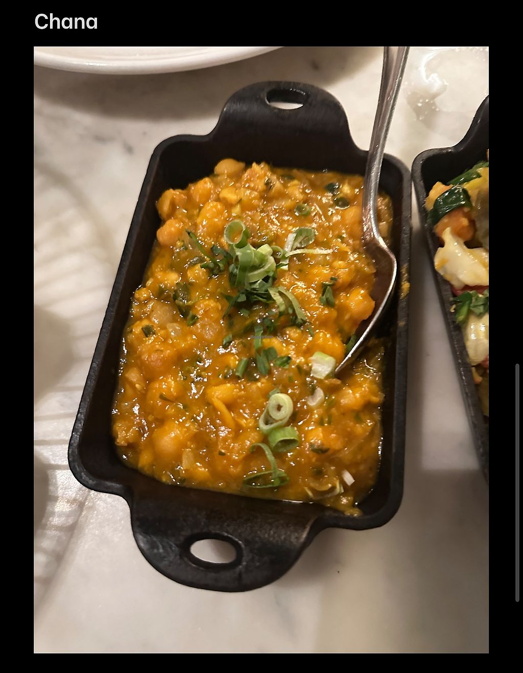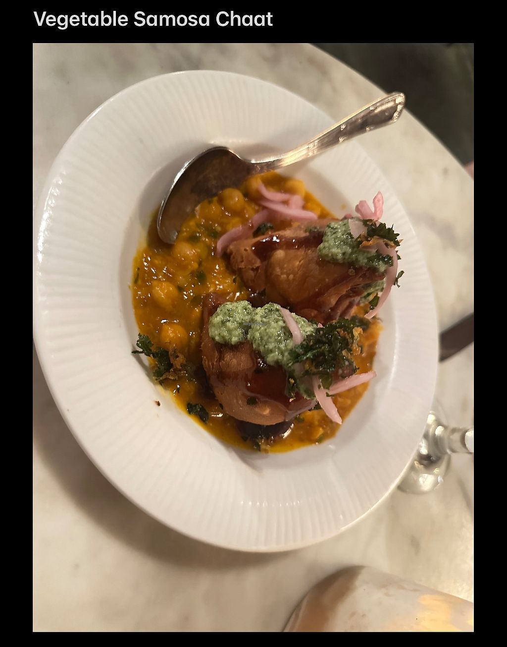 Excellent experience, tremendous service, pleasing esthetic, flavorful and enjoyable food. 5/5 stars, will definitely come back. Vegetable Samosa Chaat, Vegetable Jalfrezi, Dal Tadka, Chana & Roti.