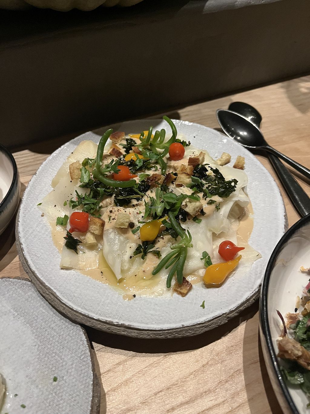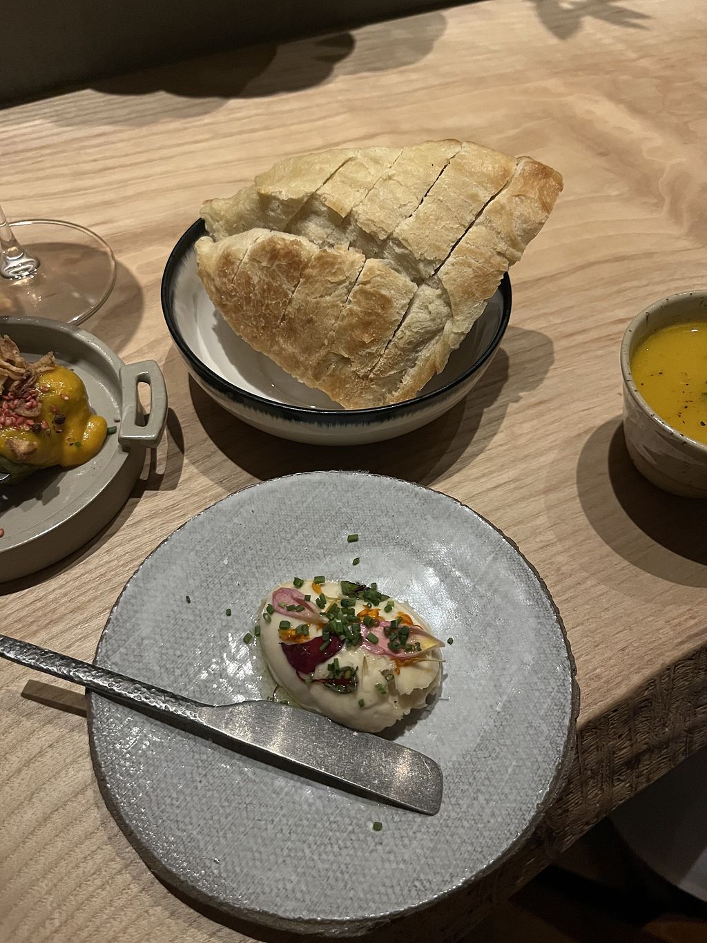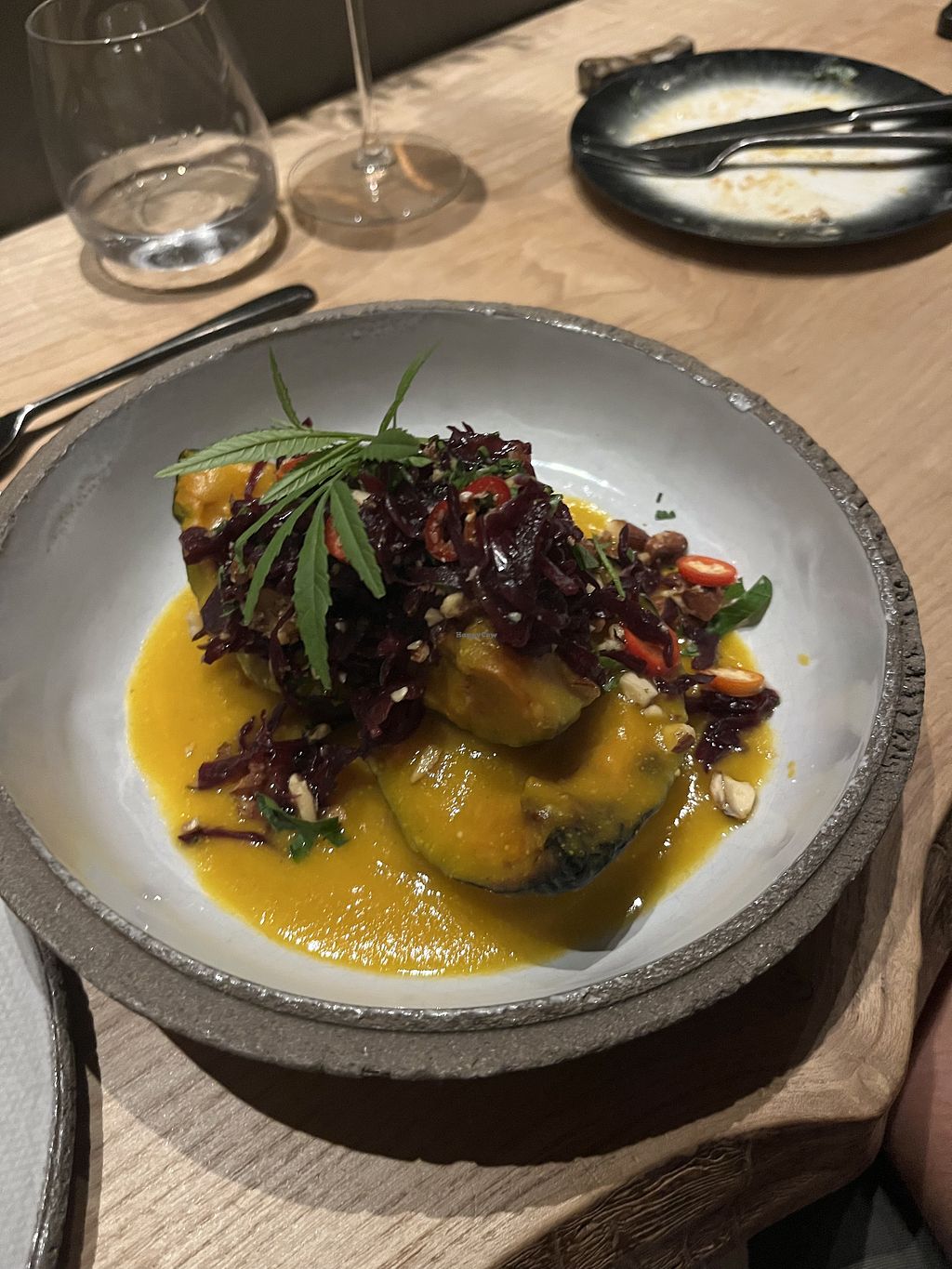 Interesting experience! The sleek, minimalistic interior, subdued lighting, and thoughtfully chosen tableware contribute to a captivating aesthetic. While the gluten-free warm options were somewhat limited, I still enjoyed the brussels sprouts with mushrooms and mustard sauce. Also the radishes with cashew cream were a favourite.
