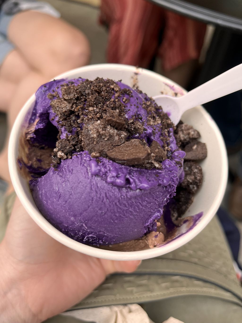 3 vegan options - Ube, Carmel coconut chip, strawberry basil sorbet