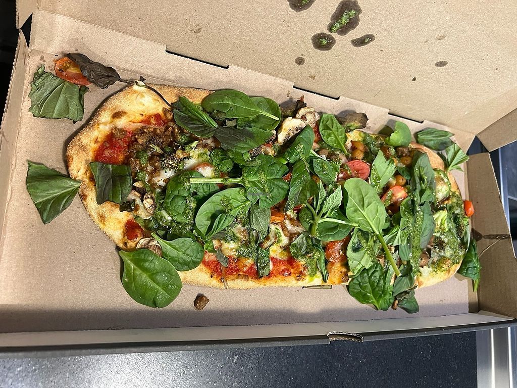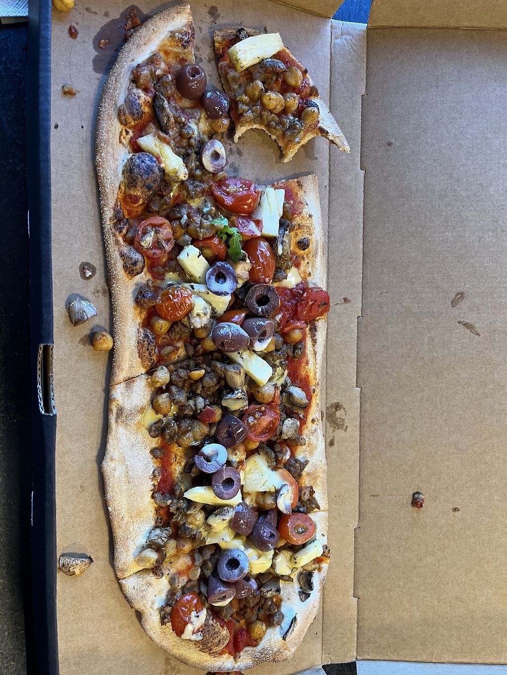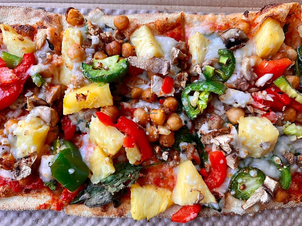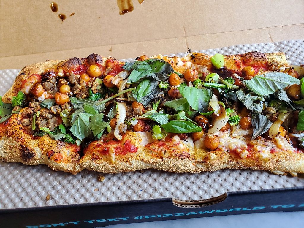 &pizza makes amazing pizza, and it's very vegan friendly. You can get however many toppings you want, and they're all delicious.