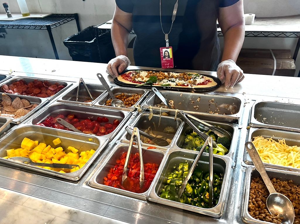 Read moreI topped mine with chickpeas and the vegan sausage for my protein, and vegan cheese, and lots of veggies. After it comes out the conveyor belt, you can add sauce and more fresh veggies.
