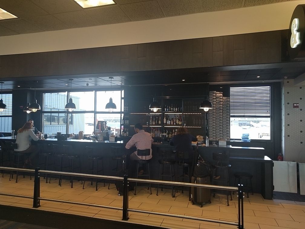 It's conveniently right next to a bar so you can get your fill of that too; also electric outlets at every seat for charging your phone.